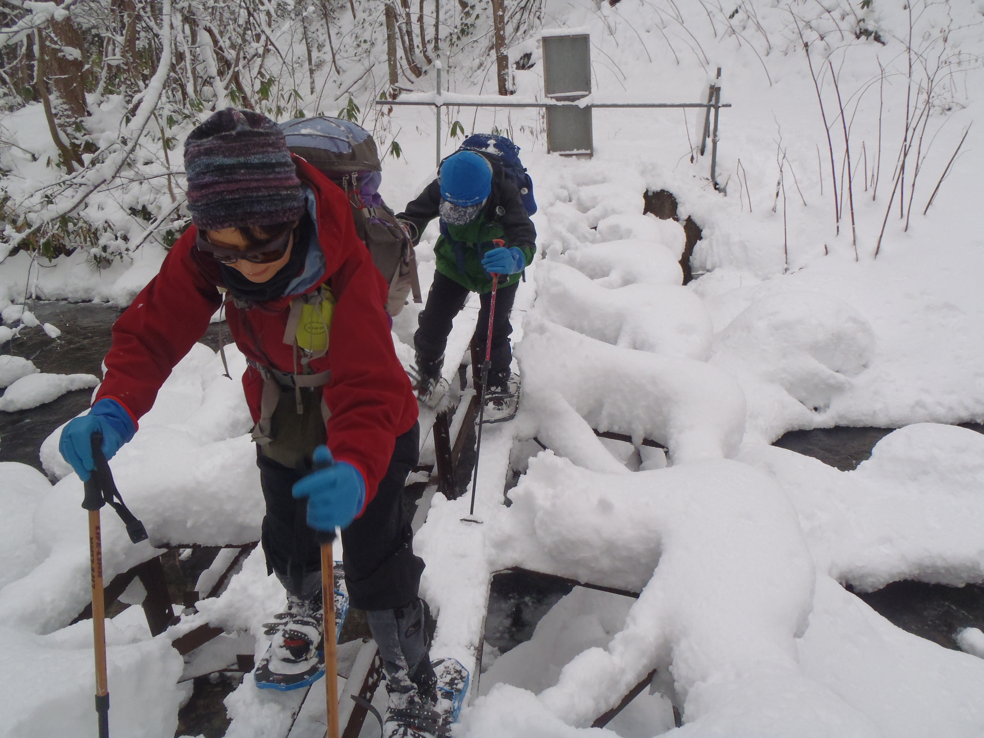 鉄骨だけの橋 雪が不安定でちょっと緊張。