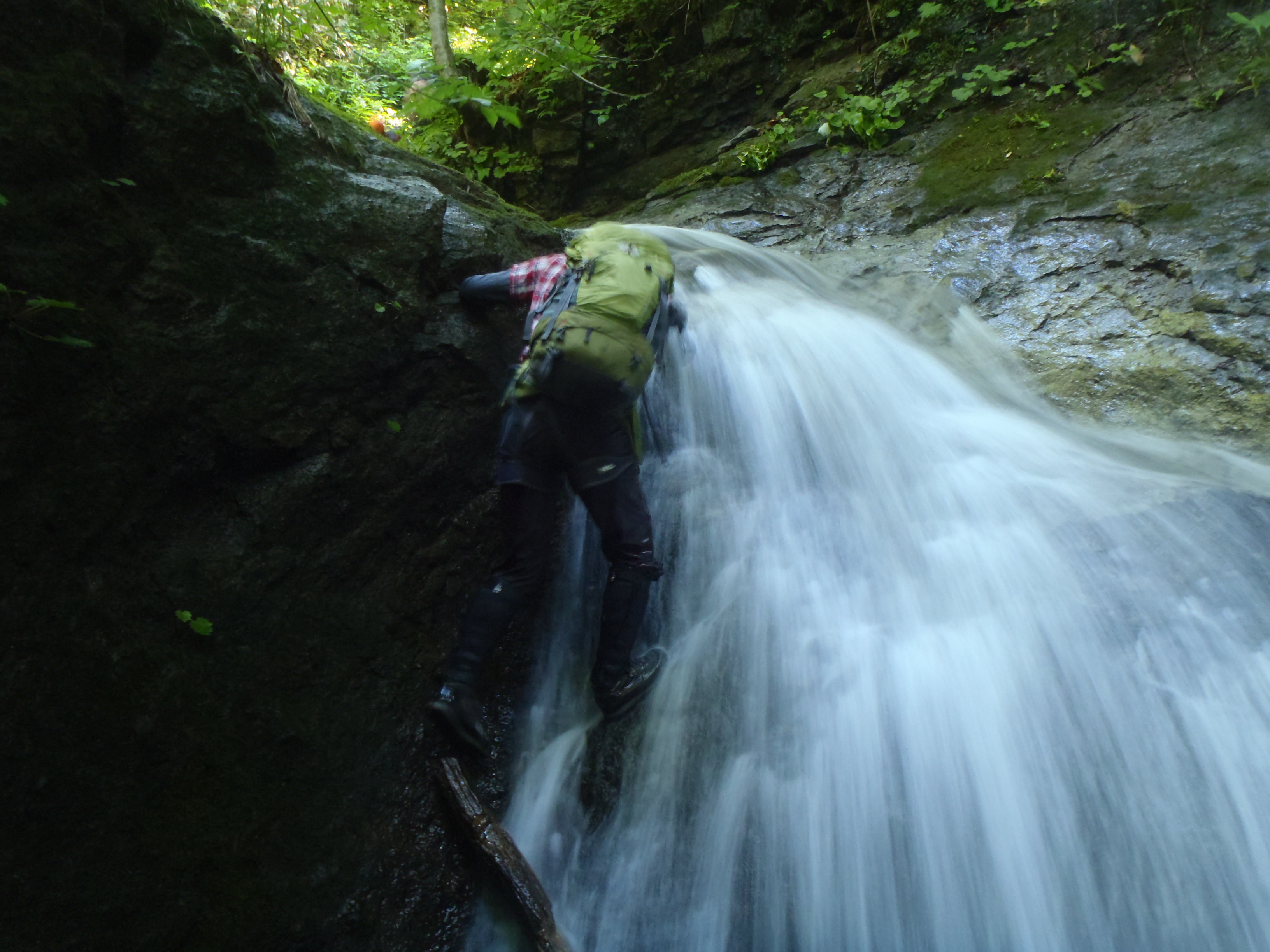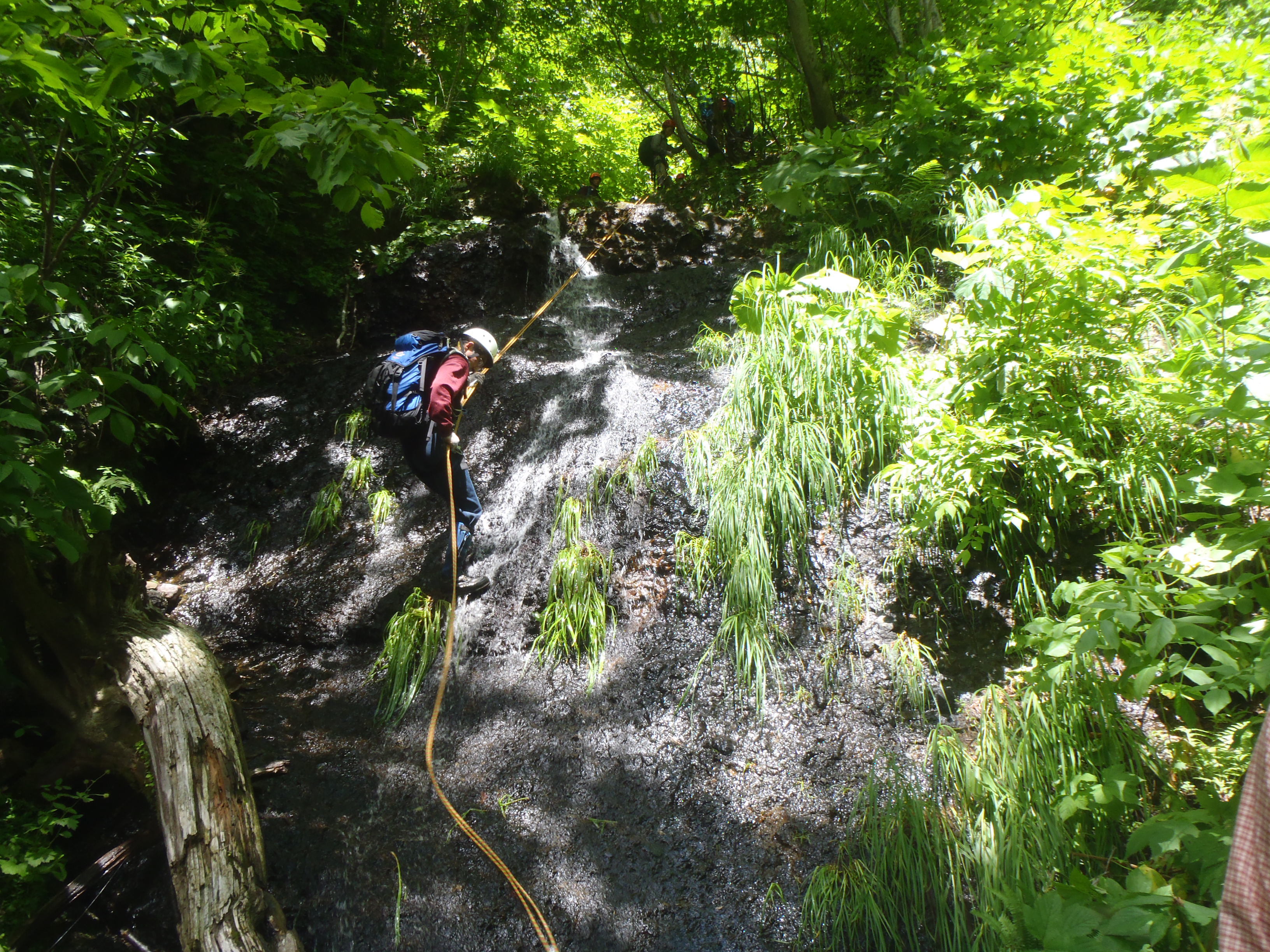 沢研修で神威岳木挽沢・・・涼を求めての水遊びでした。