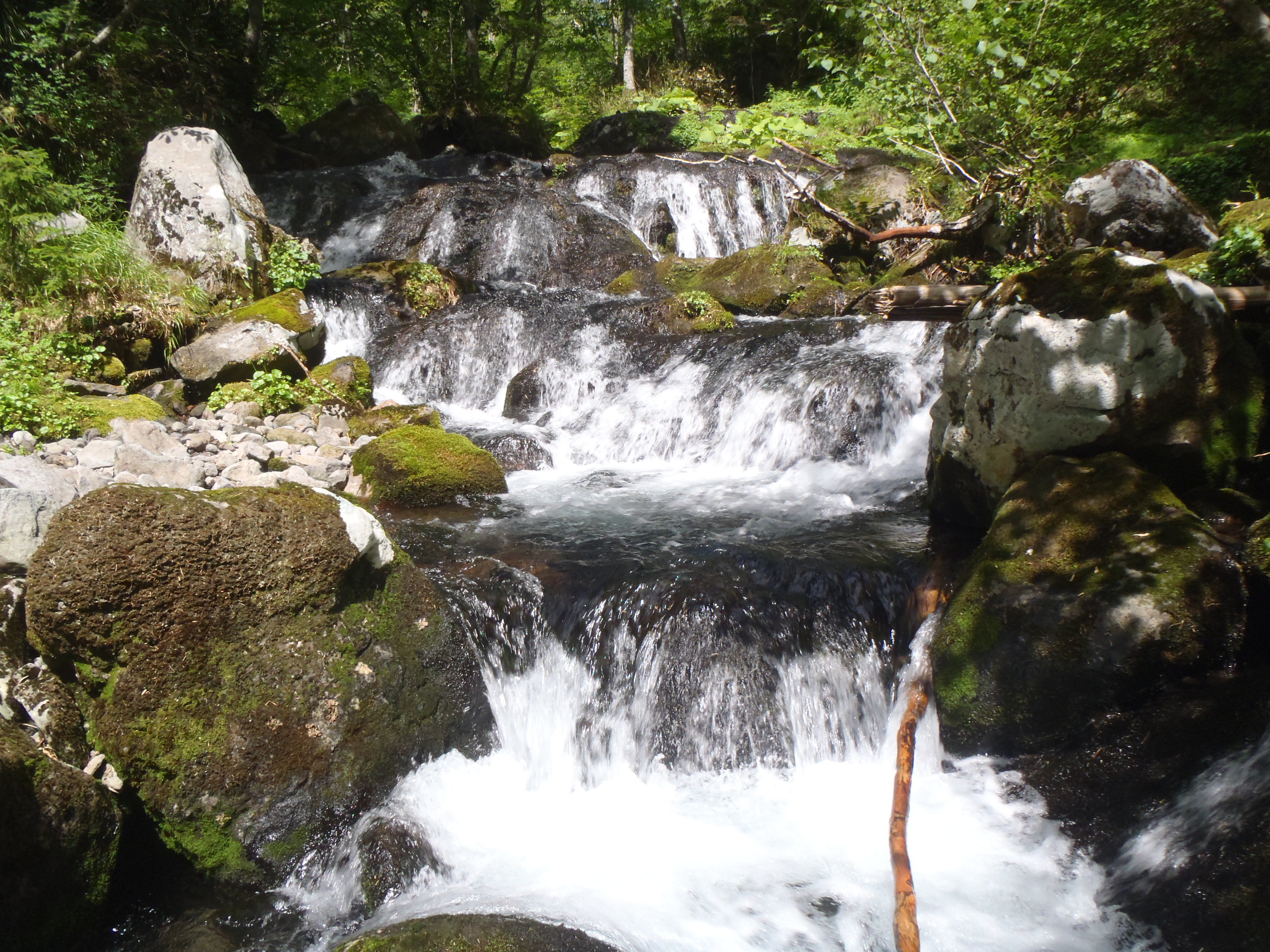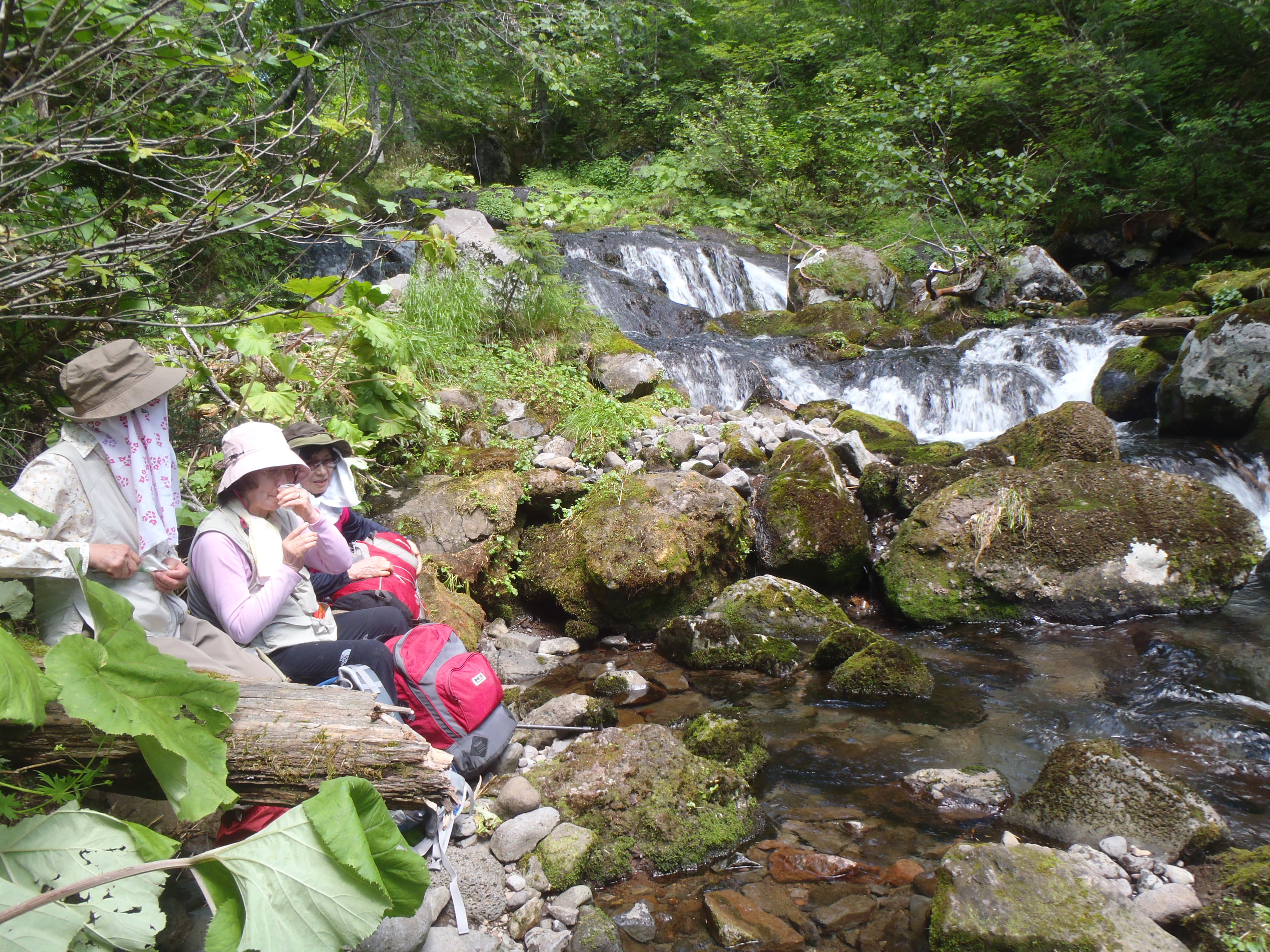 沢の水量が多いので 水戸黄門ご一行様 「私たちには渡渉は無理~」