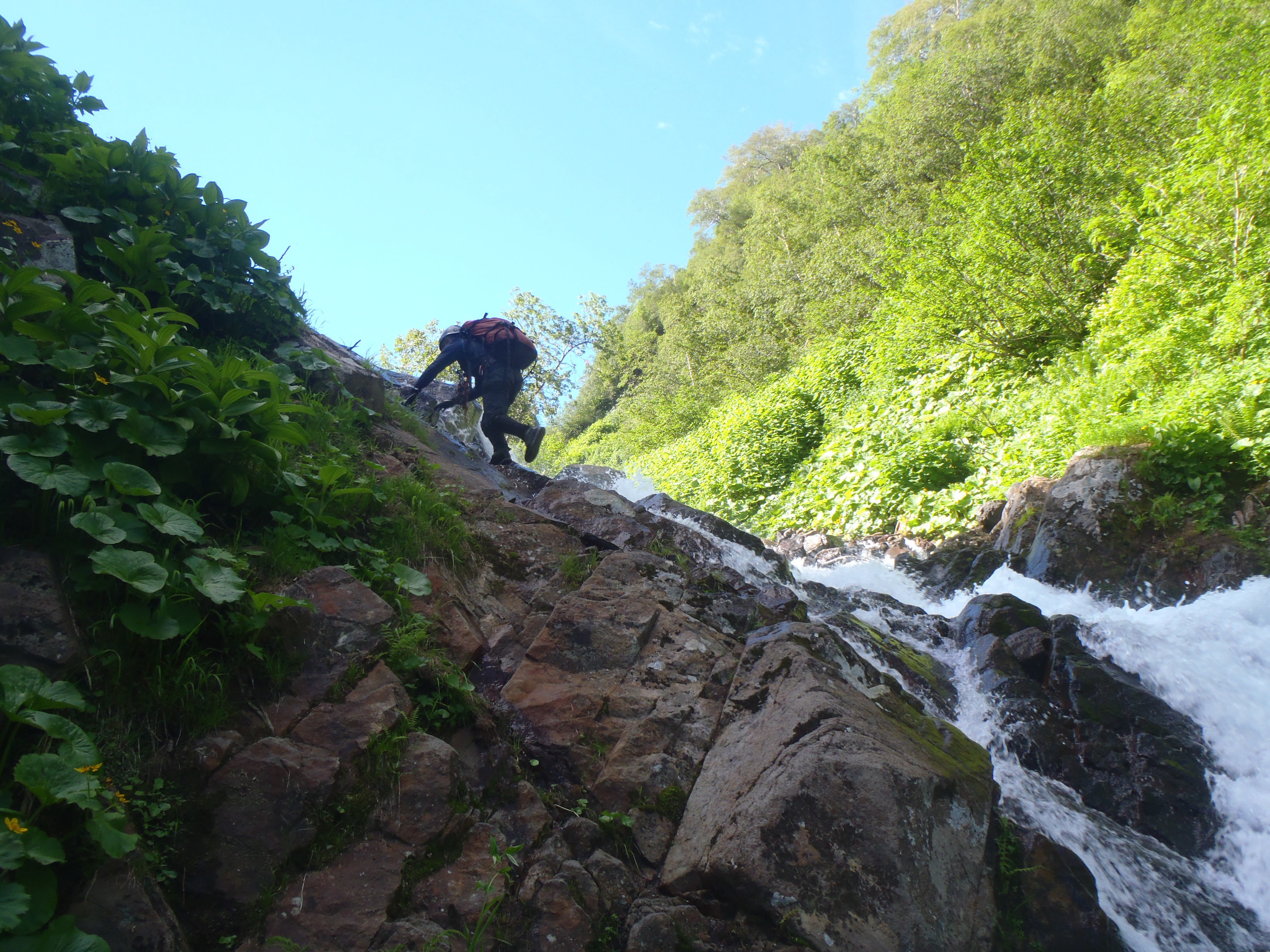 天気がいいので滝も直登します。