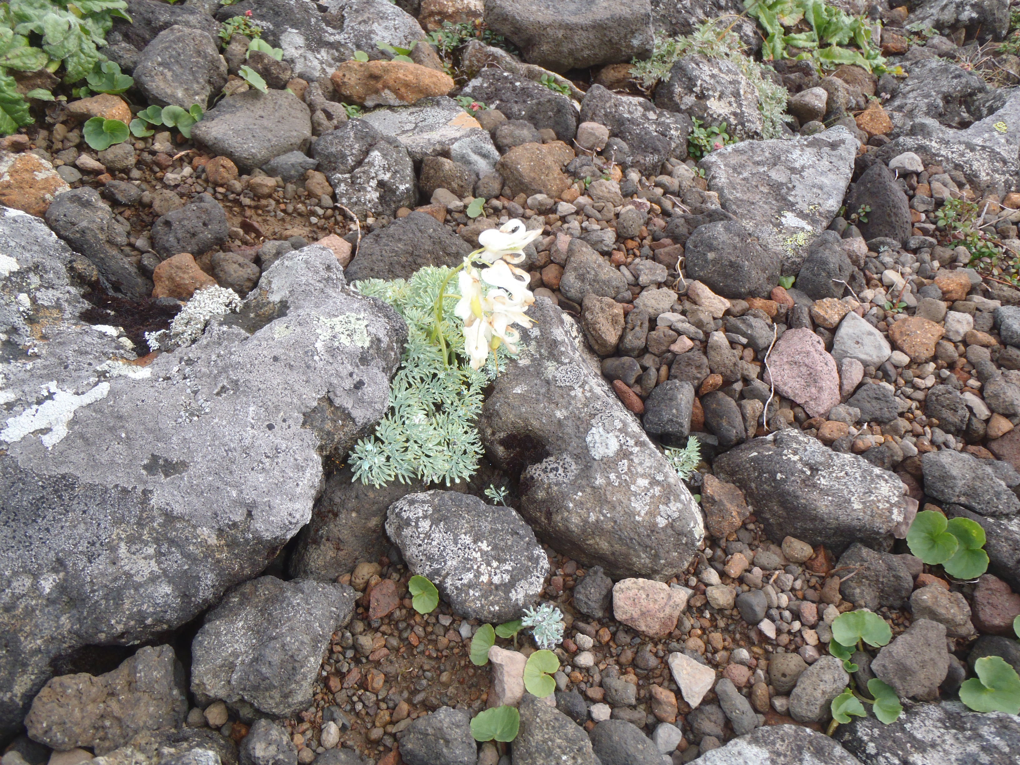 縦走路の近く 以前に見つけた場所で 白花コマクサ まだ生き延びていました。
