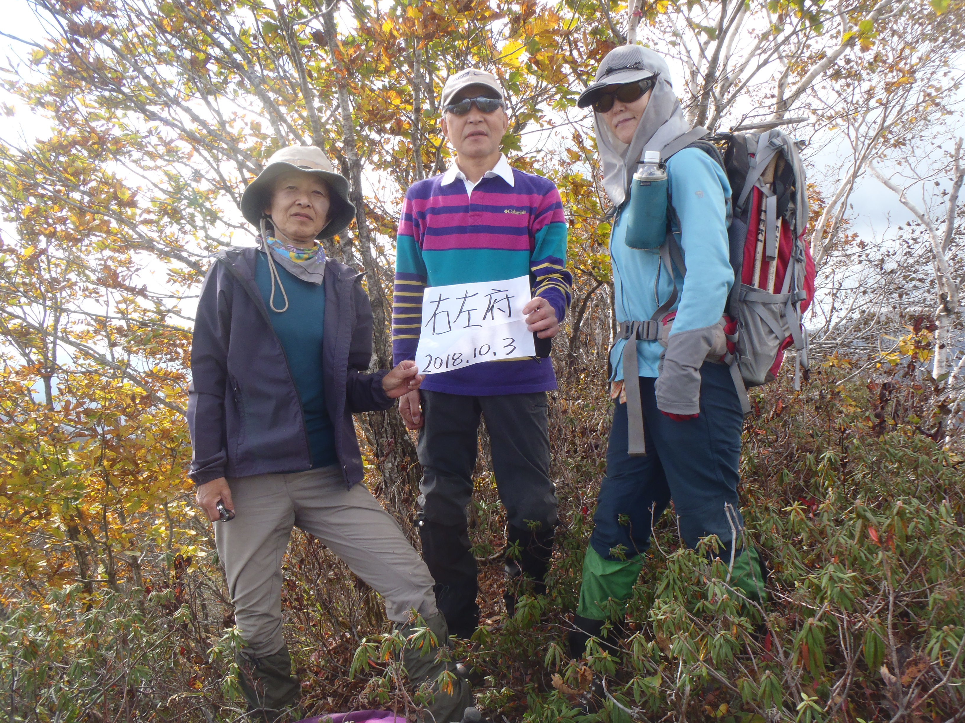 細い岩稜を辿って尾根2等三角点の 右左府 に到着です。