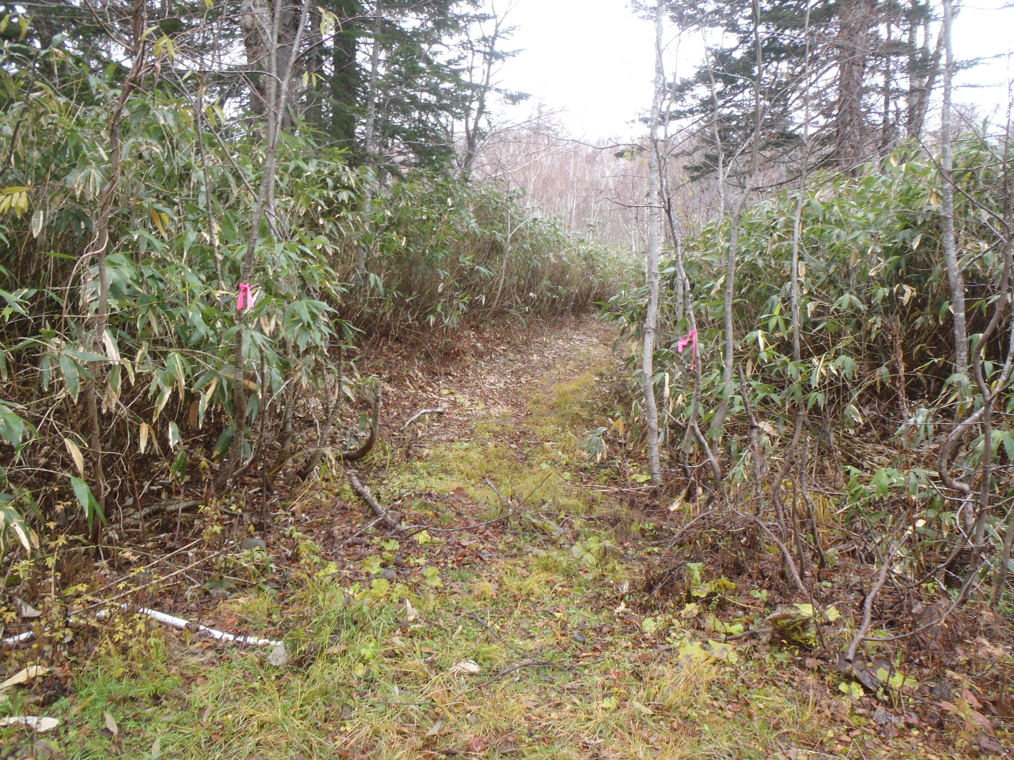 5分ほど歩いたら 笹刈が途中で放棄され 藪に覆われた作業道跡になってしまいました。