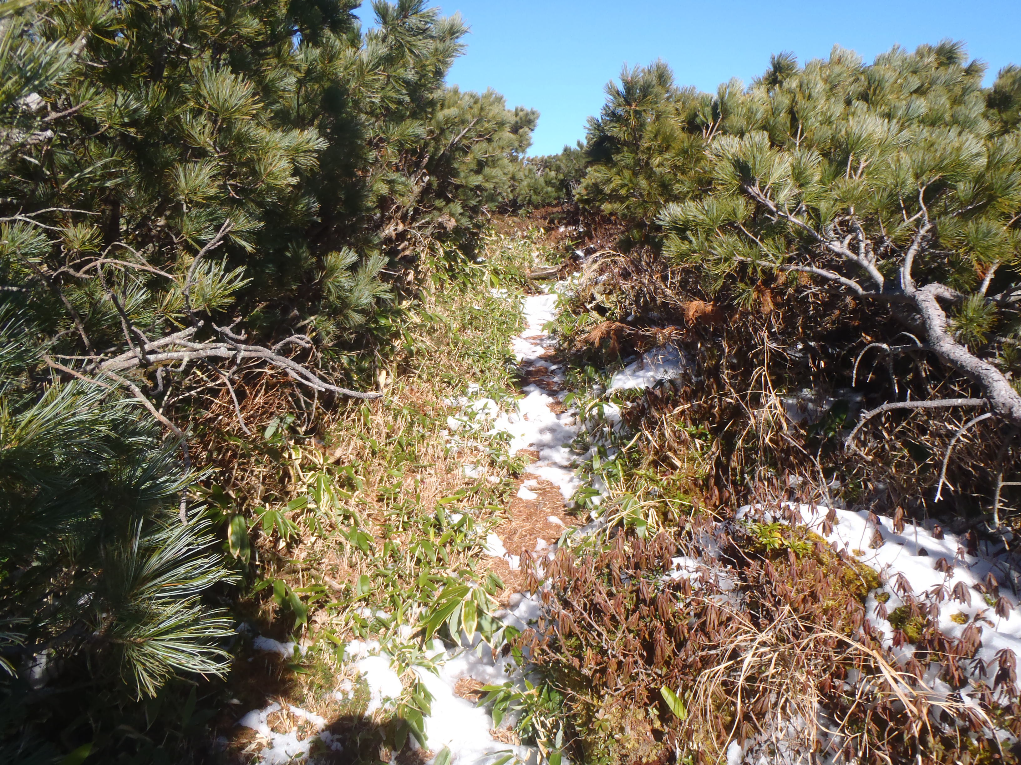 800m越えたらハイ松に隠れて雪が溶けずに残っていました。