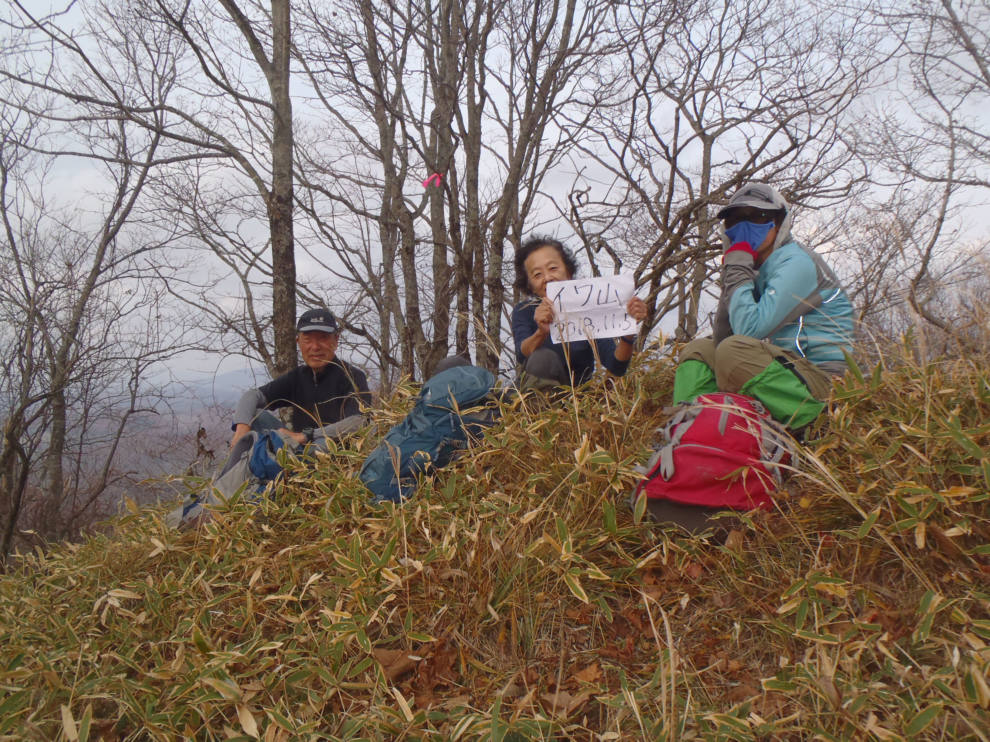 ハアハア ゼイゼイ 息を切らせて急斜面登ったら テープすらないイワ山の山頂でした。