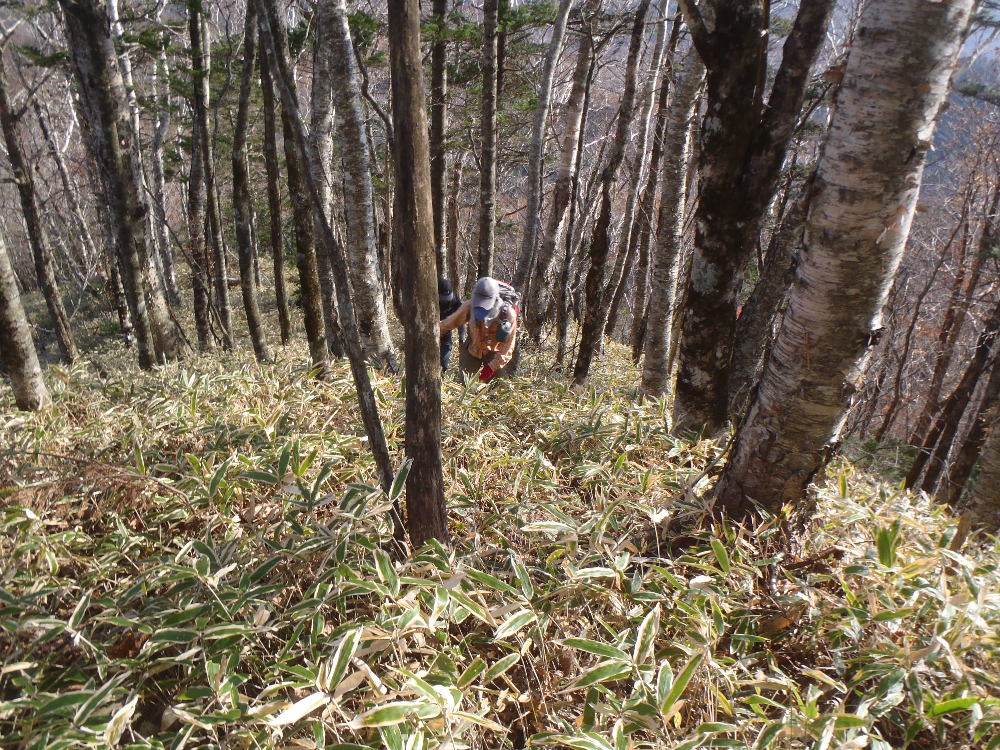 尾根に取りつくとミヤコ笹の斜面に鹿道が付いていました。