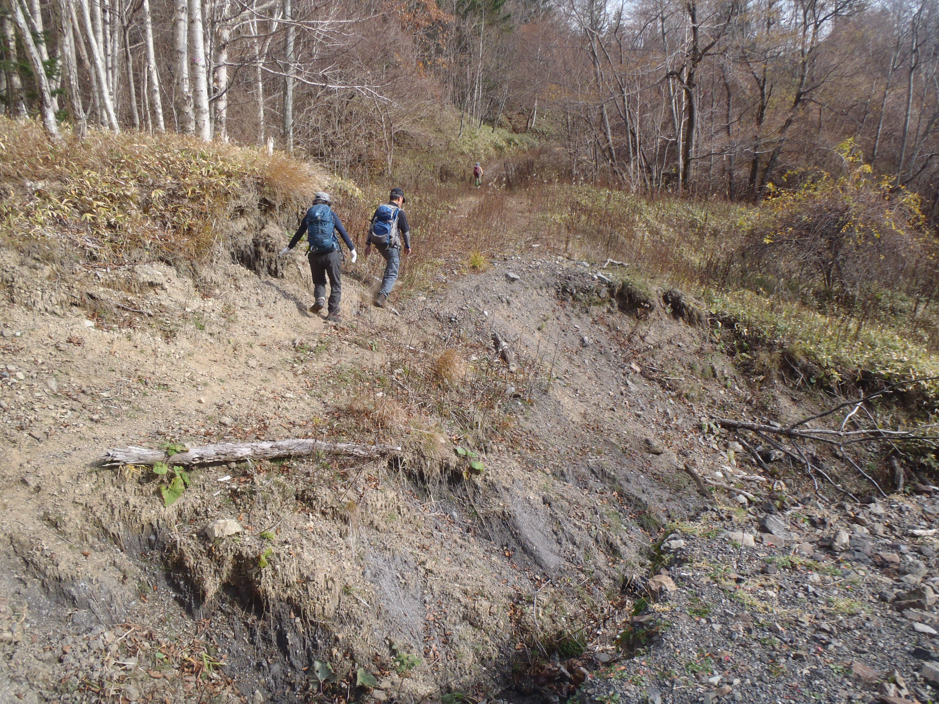 作業道は沢で決壊しています。