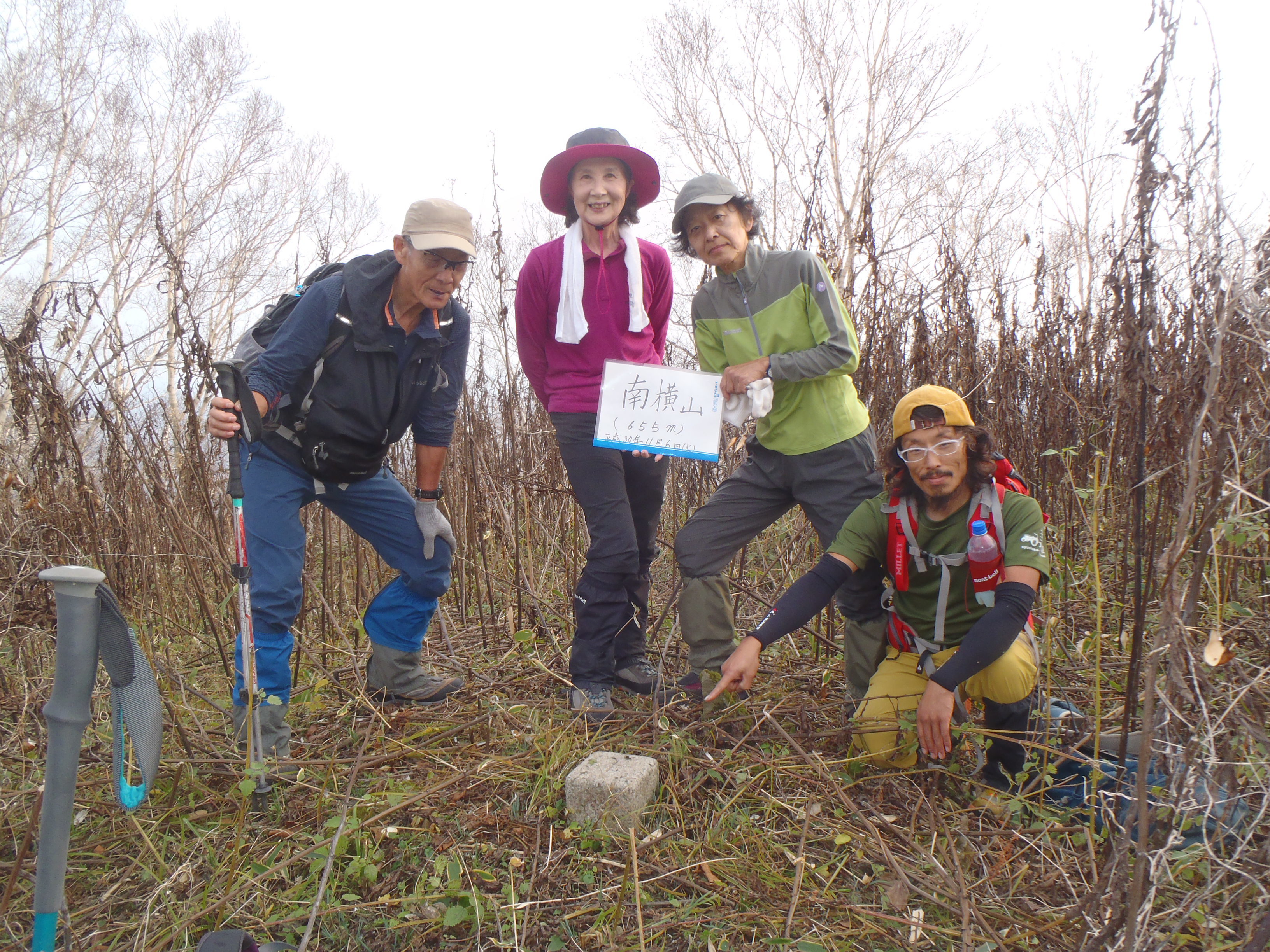 南横山は三角点 ブッシュの中で やっと見つけました。