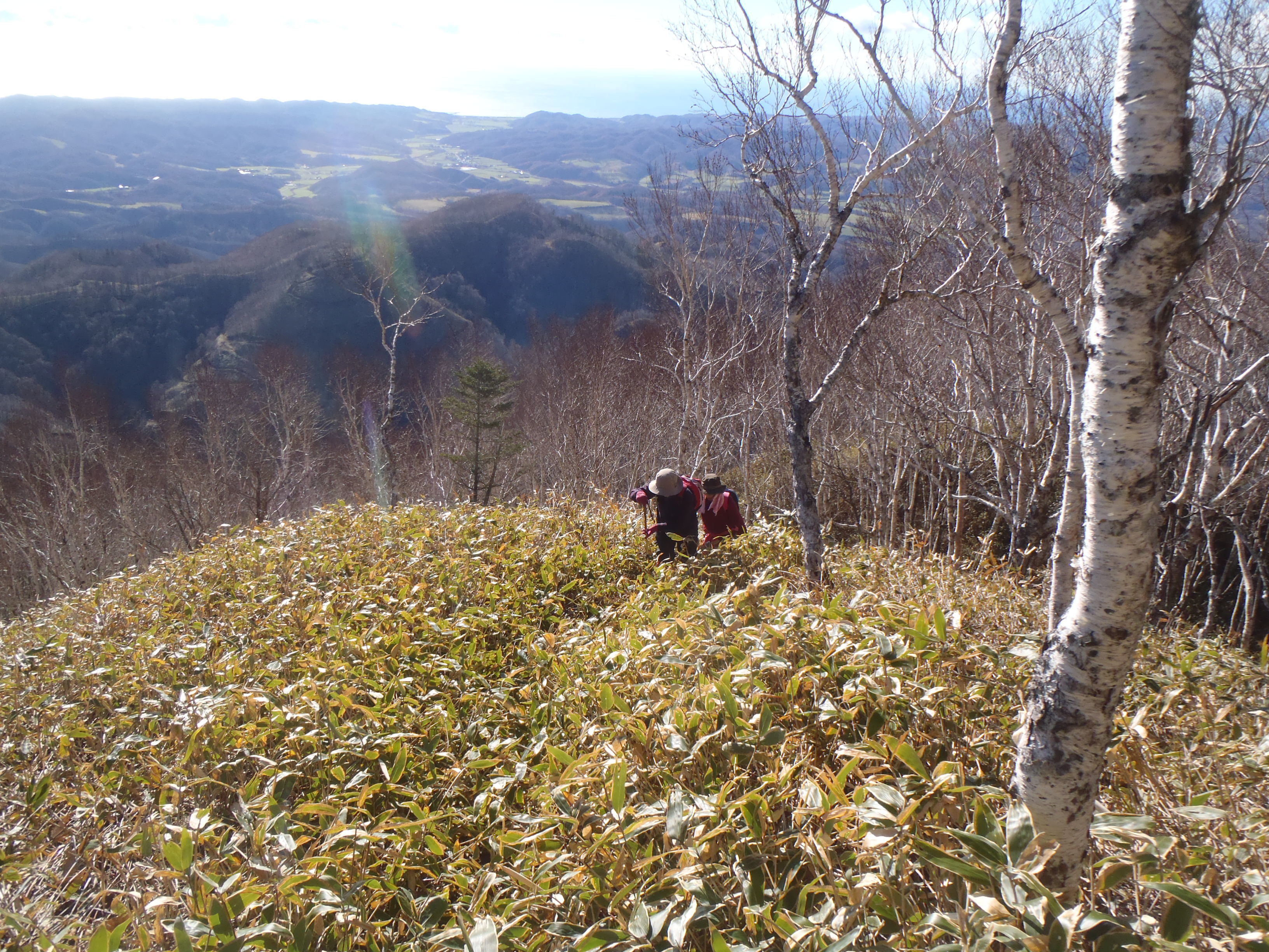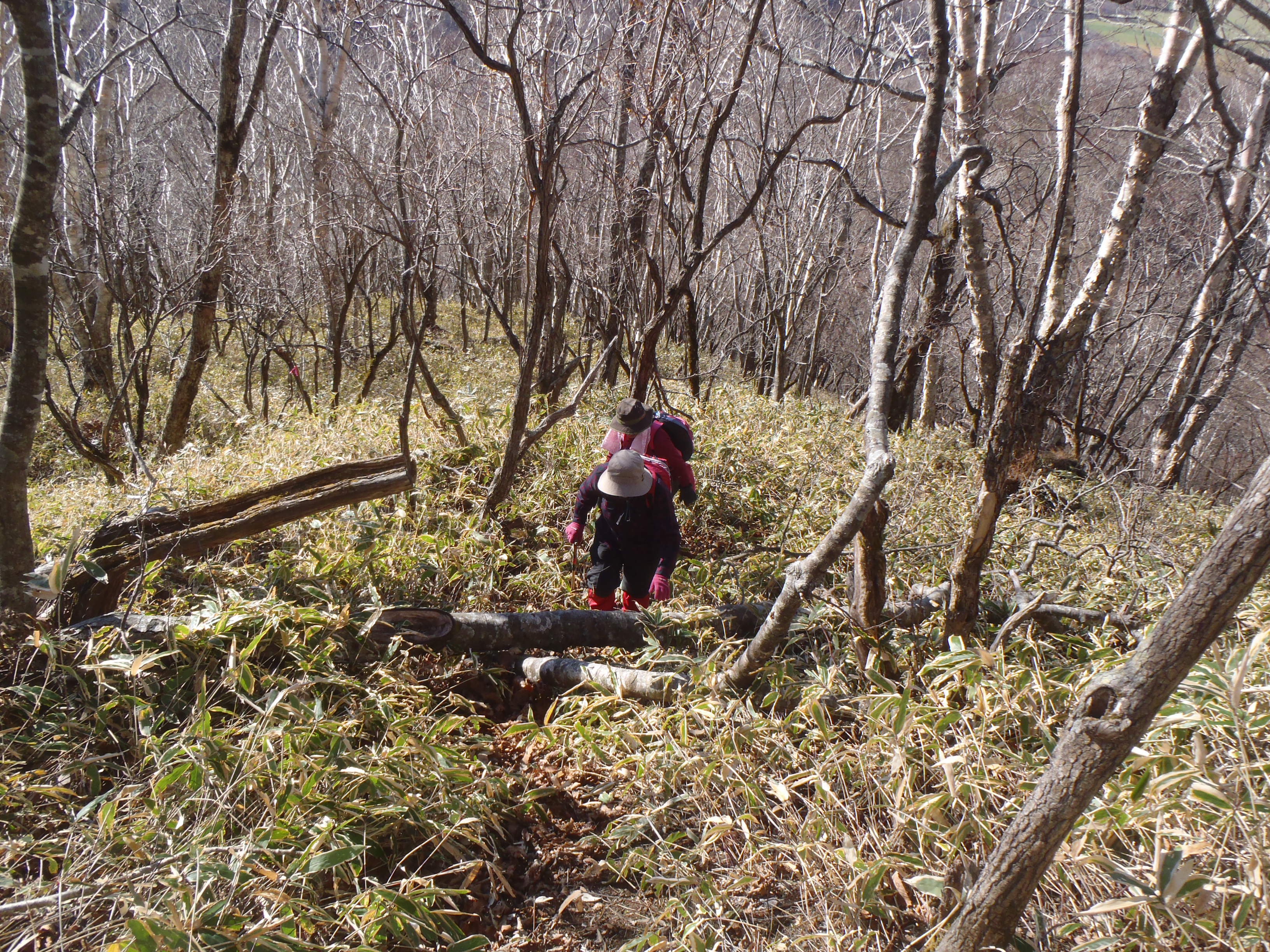登山道はミヤコ笹が覆いかぶさり 鹿道と区別できないところもありました。