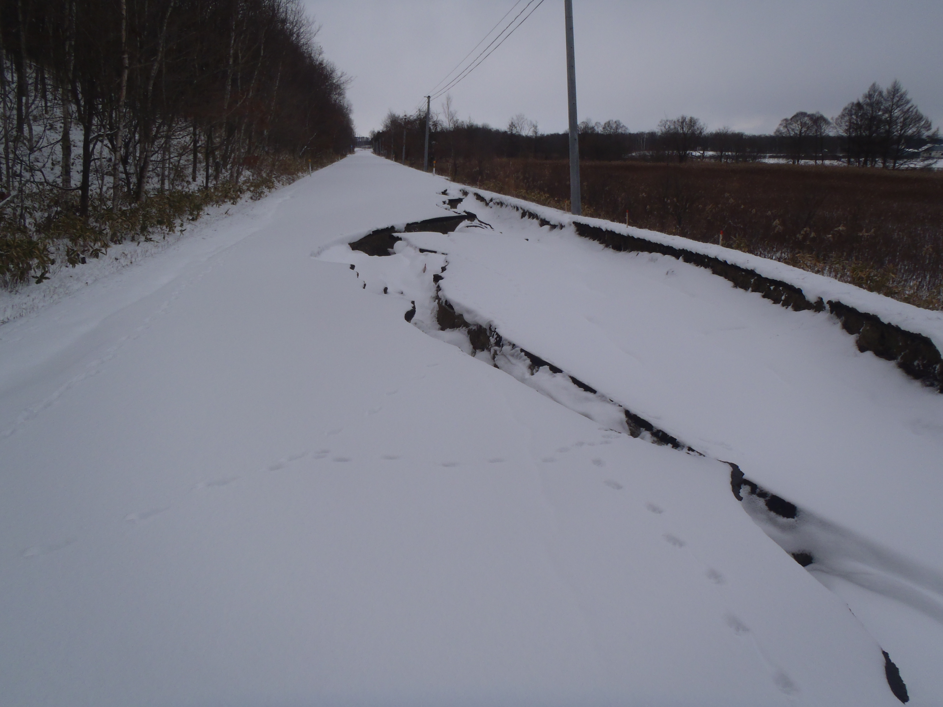 道路はご覧の通り 亀裂が入って通行止めでした。