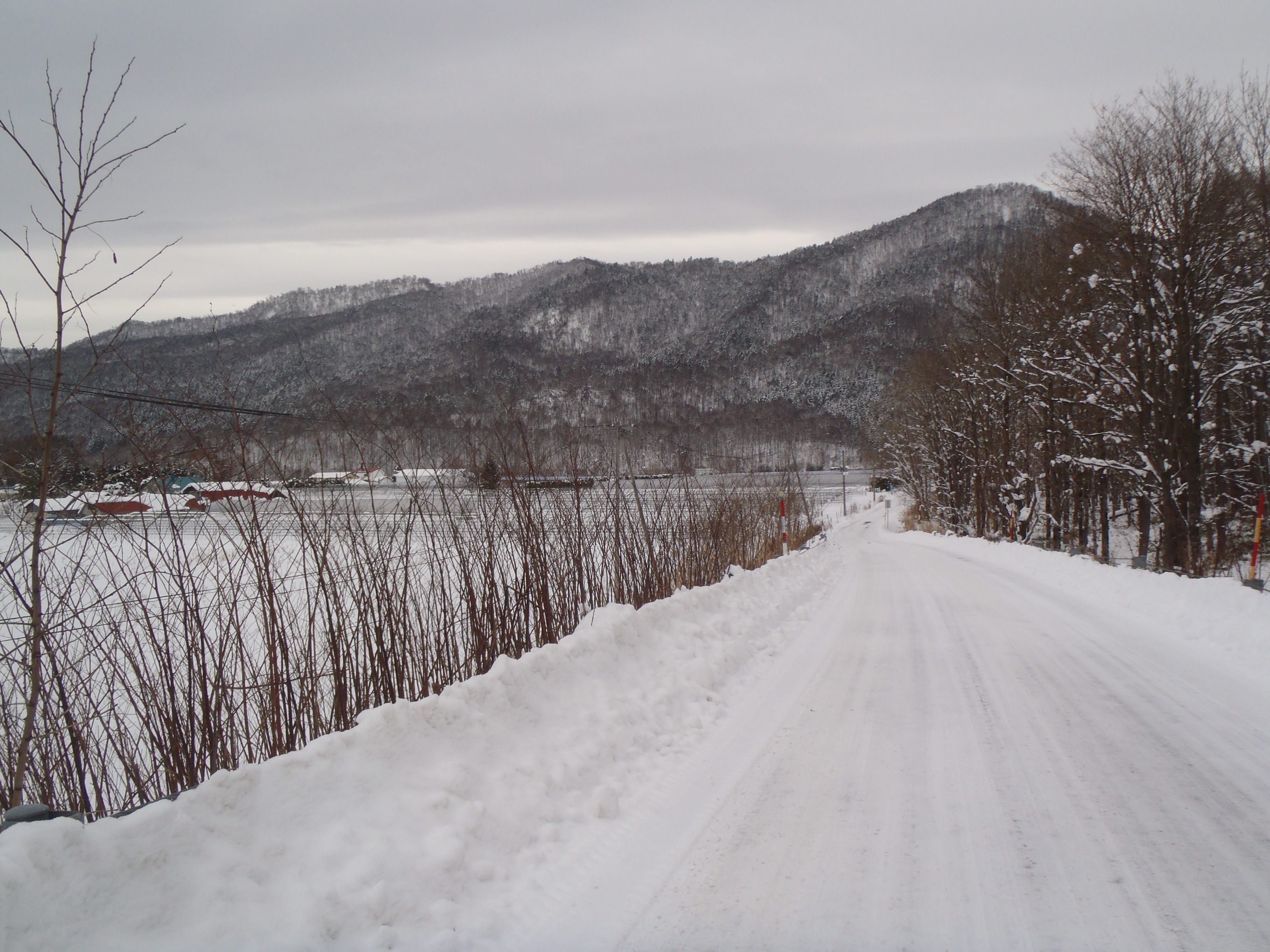 沼ノ沢コース 夕張川に架かる小さな橋を渡り 畑の横から砂防ダムの古い作業道入り口に駐車しました。