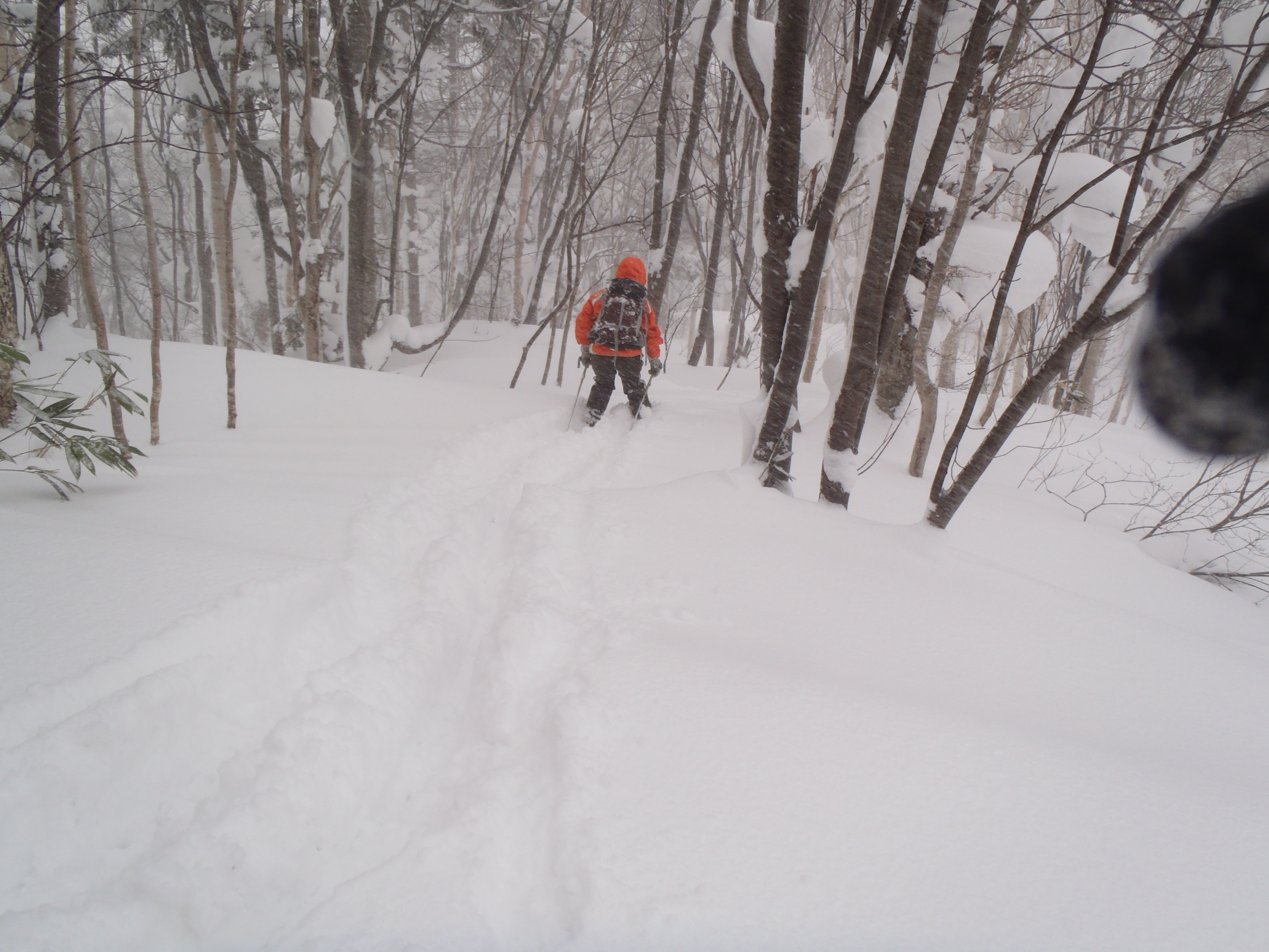 雪が深すぎて下りもスロースピード ときにラッセルでした。