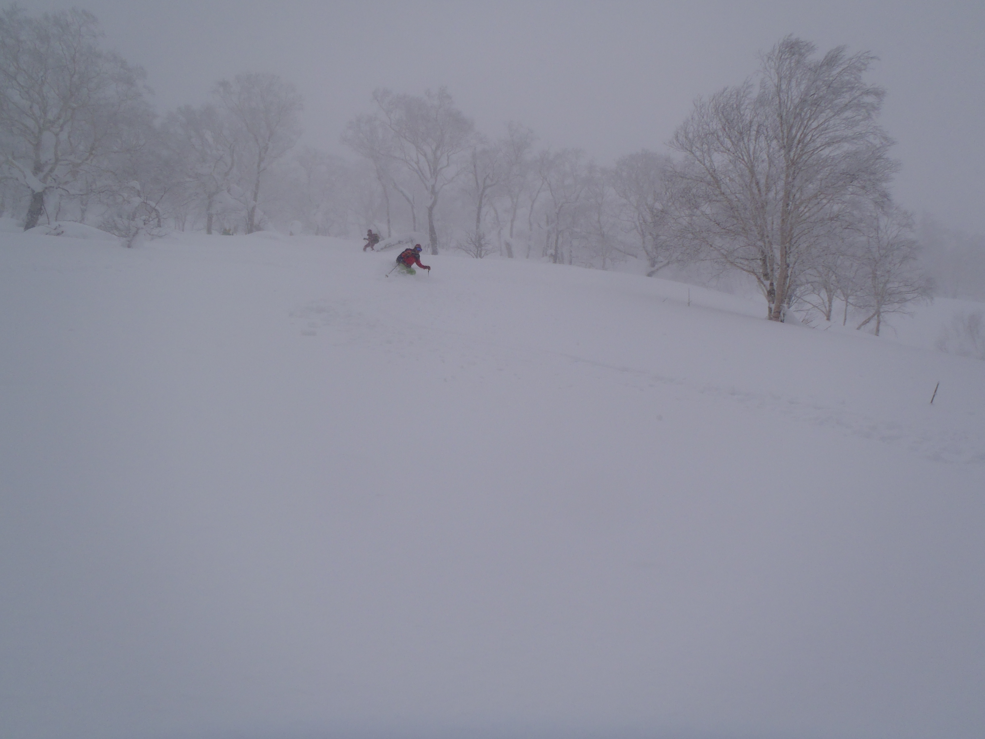 雪も軽くたっぷり ルンルン気分のオープンバーン。