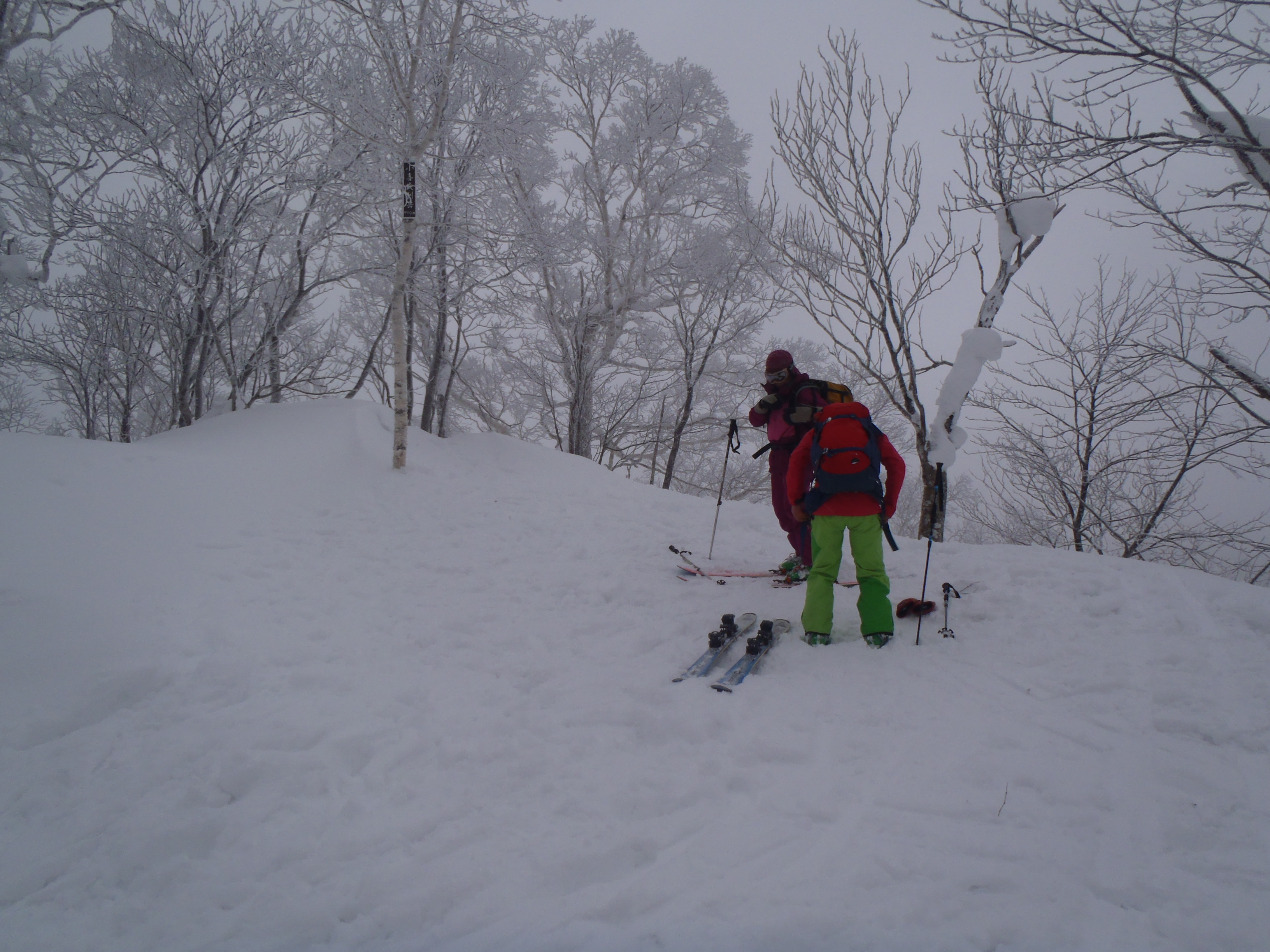 山頂標識の高さから察すると 例年より積雪は少なめのよう。