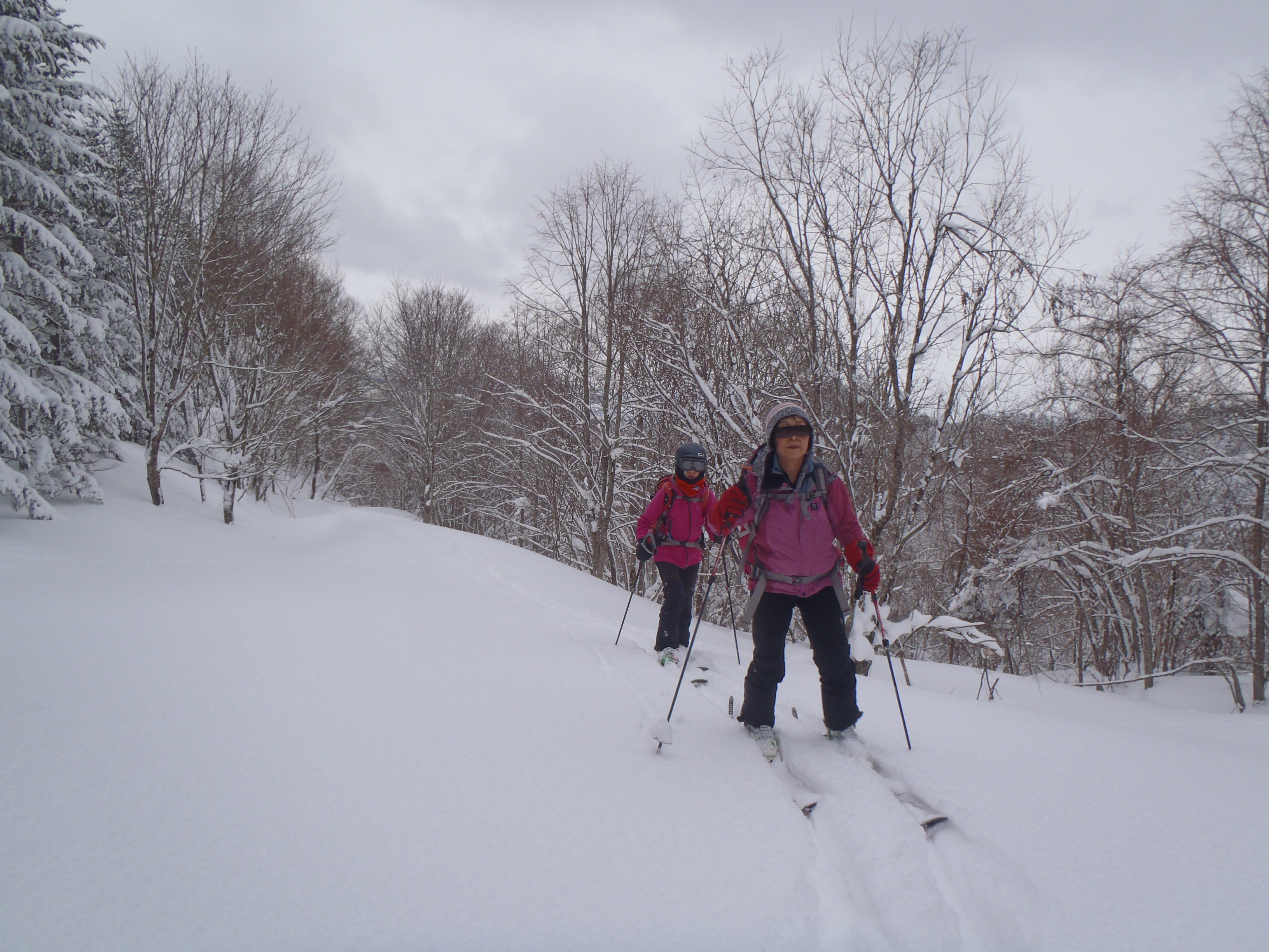 林道の滑りはまるでジェットコースター 登りのトレースがレールになって 3000m滑走でカラダが冷え切りました。