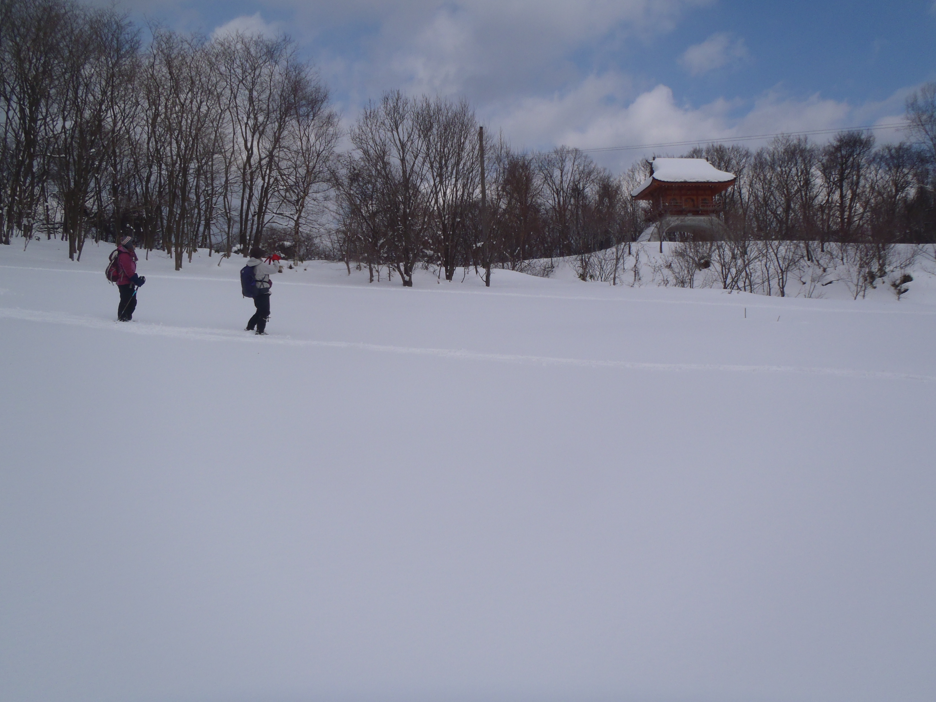 オタモイの海岸に向かう遊歩道の除雪終点から歩くと 竜宮城のような建物がありました。