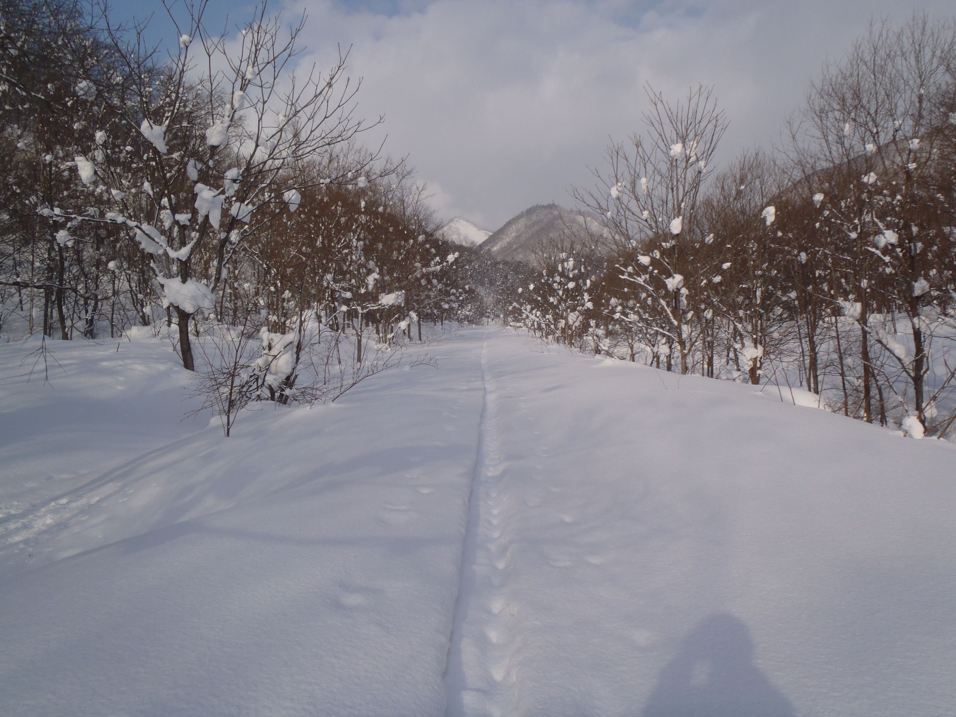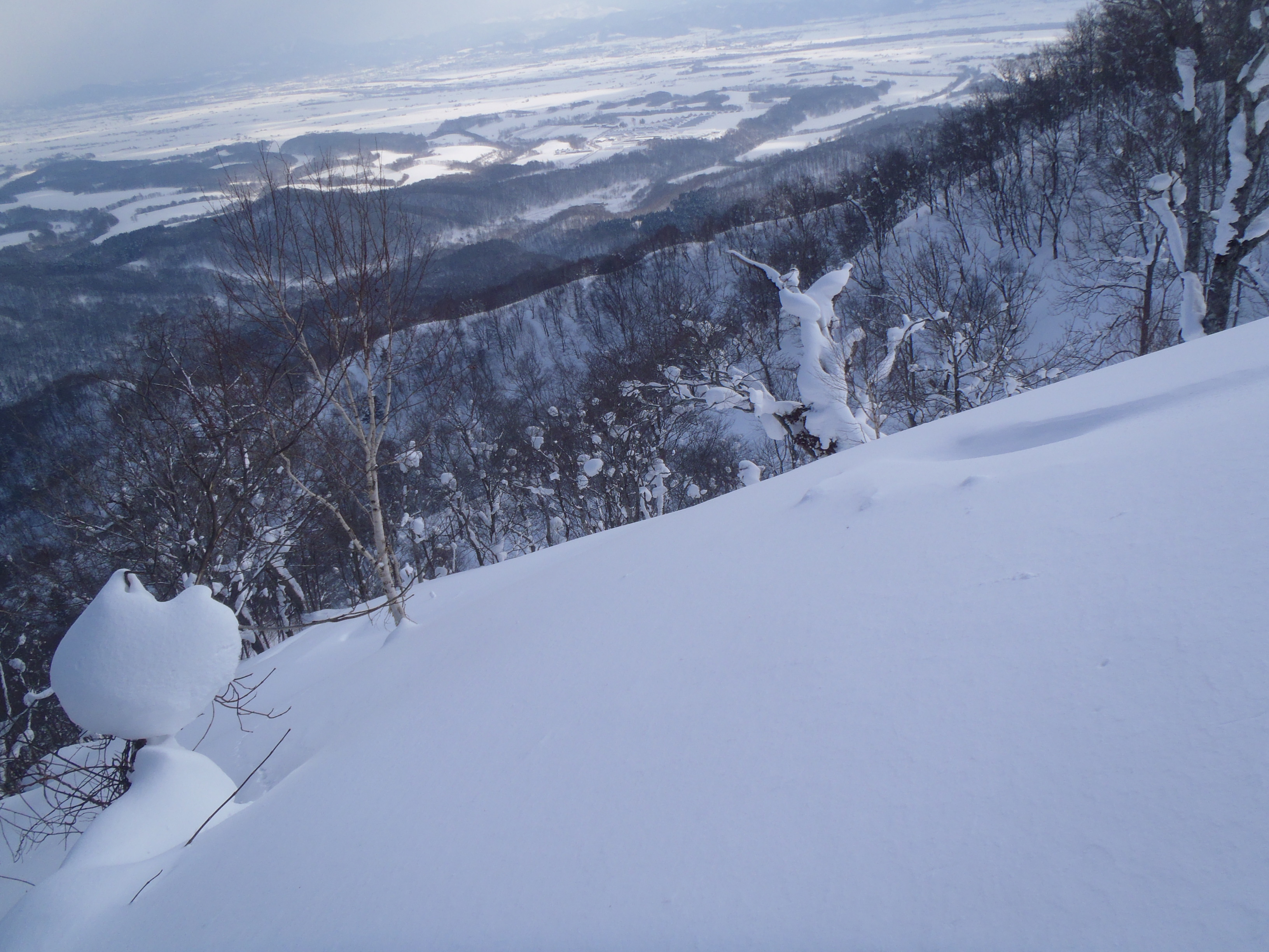 トレースは途中で消えてしまい 踝までのラッセルで稜線に上がりました。