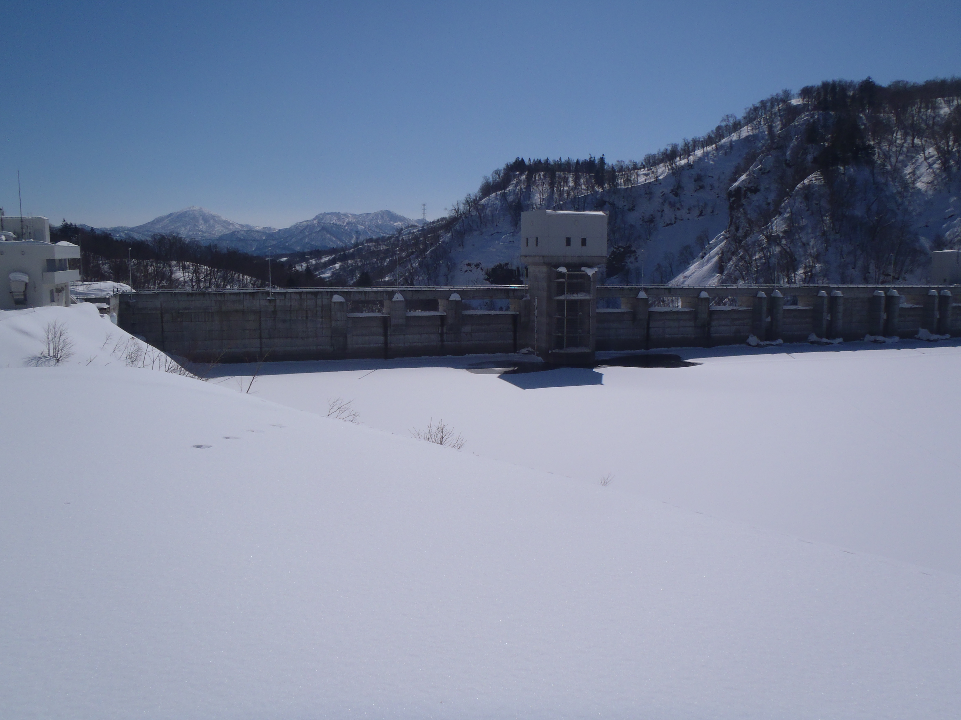 ダム湖は一面の雪原