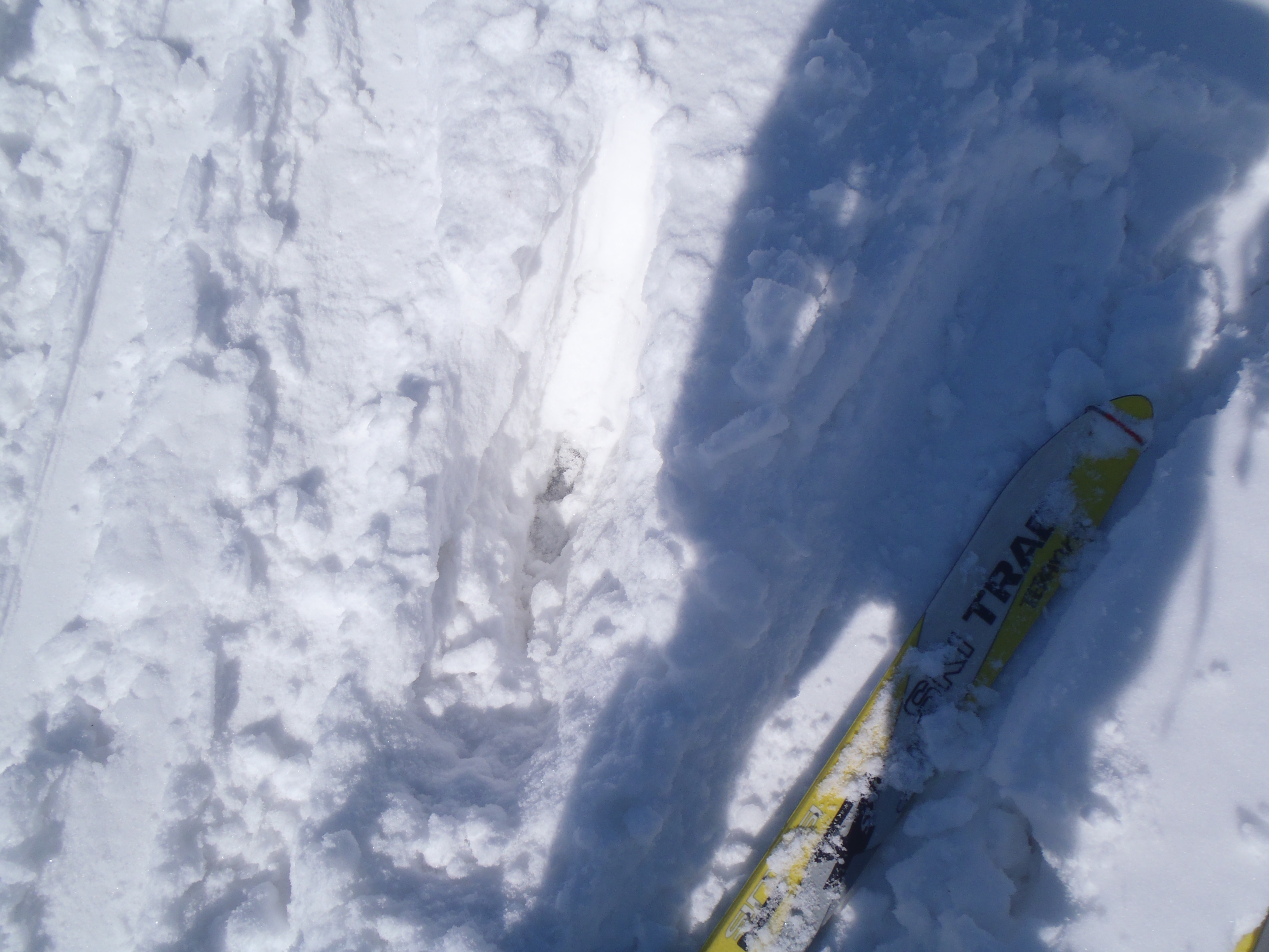 湖上の積雪はわずか30cm 氷に穴をあけようとピッケル振るいましたが その必要はないと悟りました。