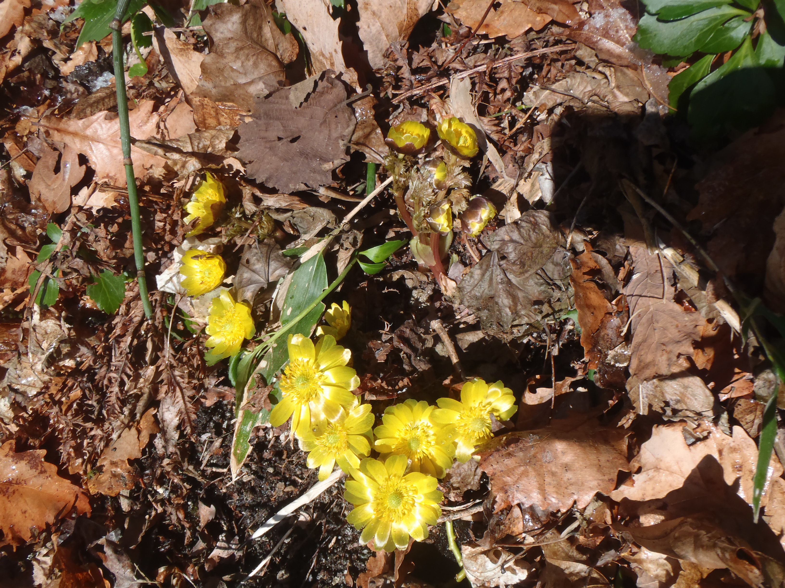 河畔の公園から崖を登って行ったら フクジュソウ 咲いていました。