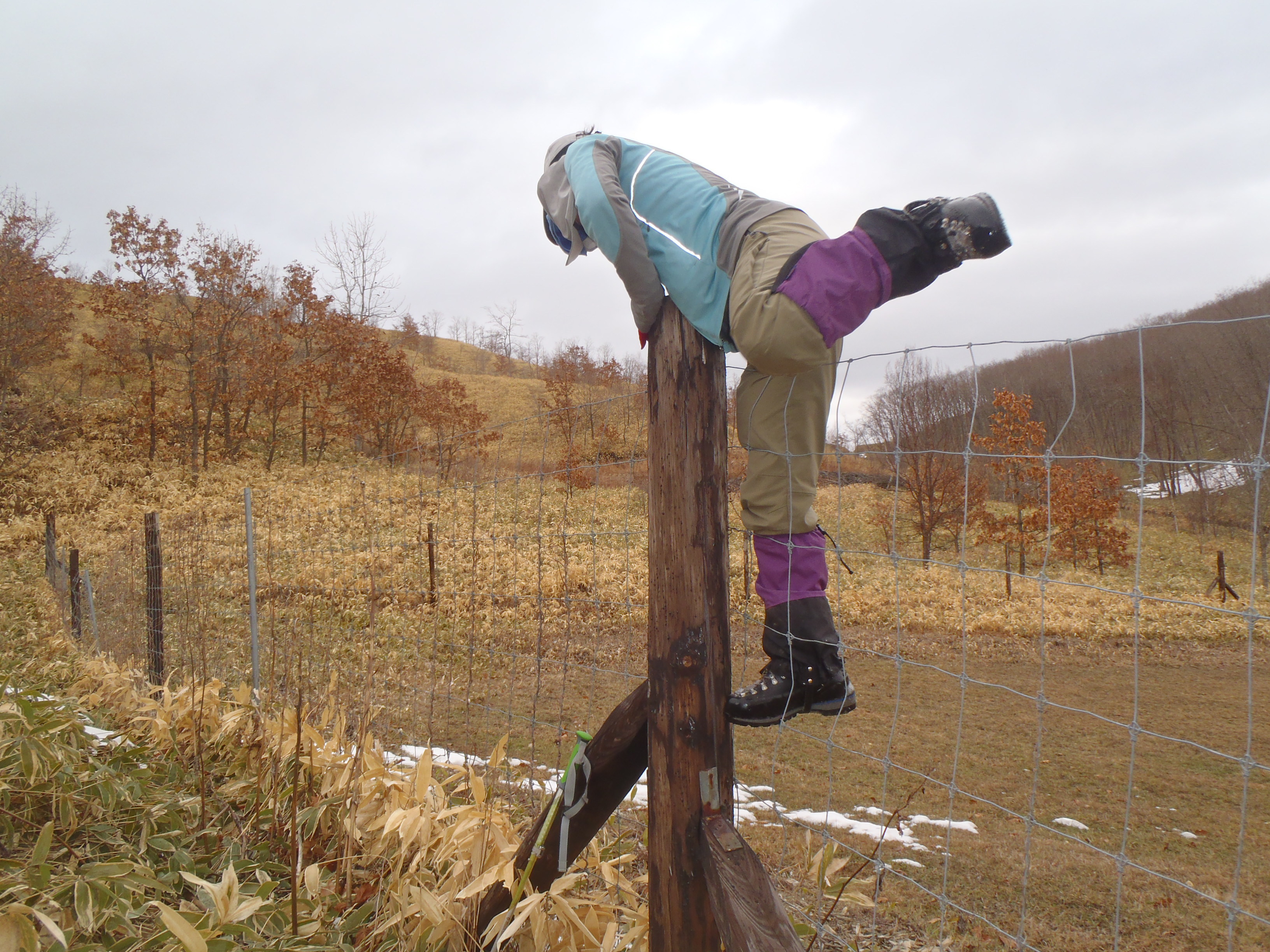 幕別町の幌内山は本別町市街に近く 牧場の鹿柵を乗り越えて笹漕ぎです。