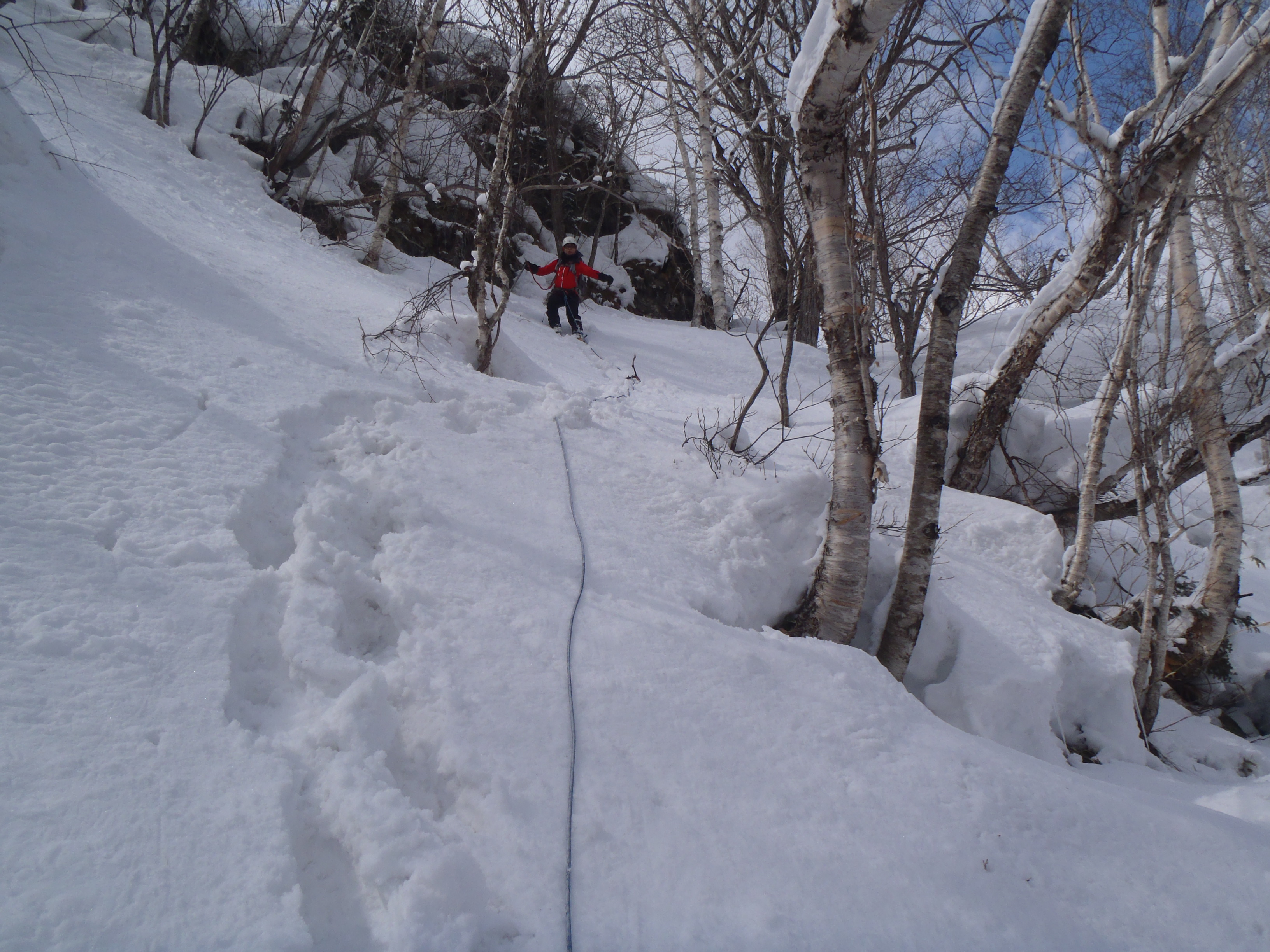 カール状地形は東斜面で雪は安定していました。