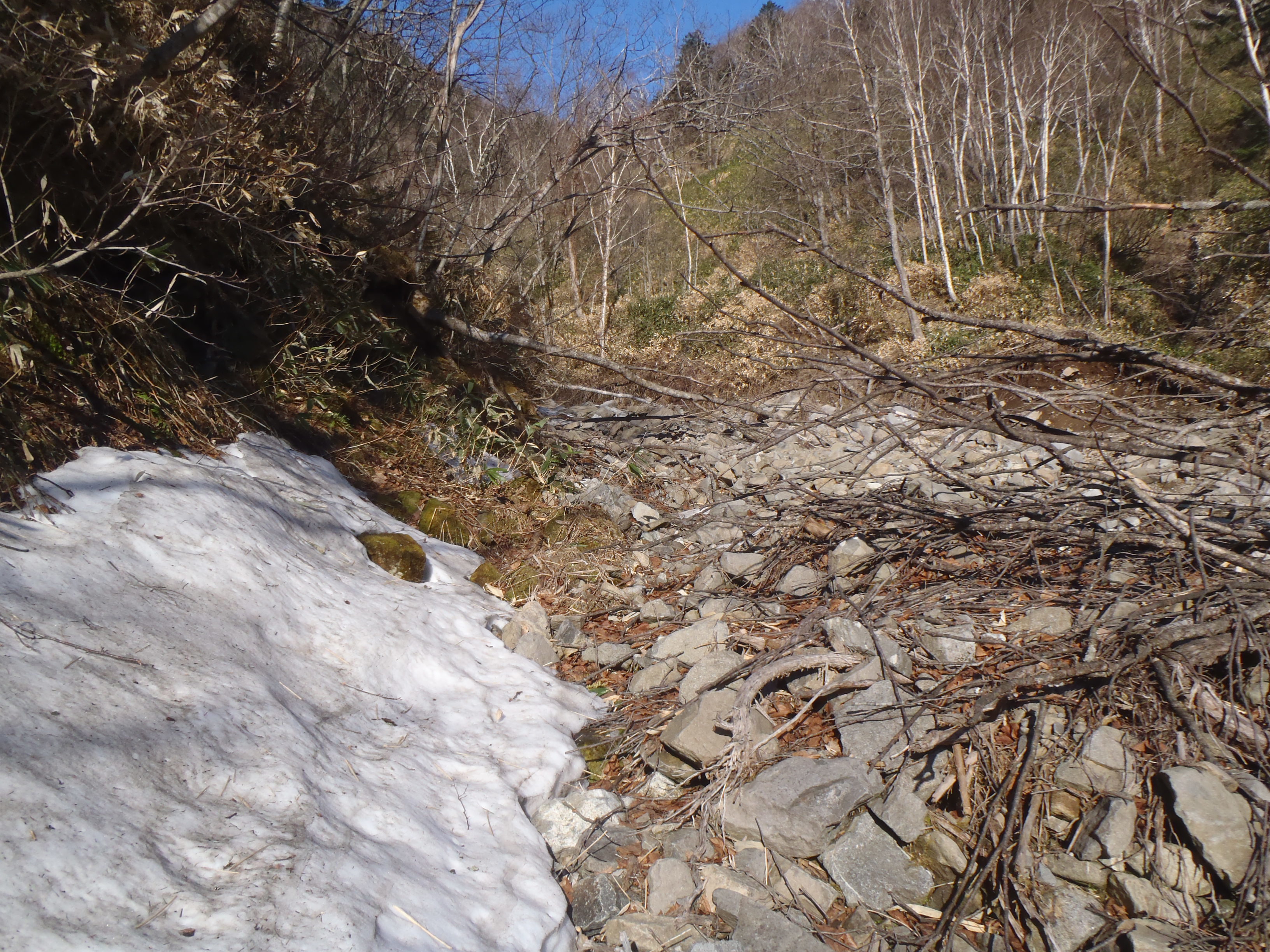 期待した雪がなく 飛び石伝いに沢登りになりました。