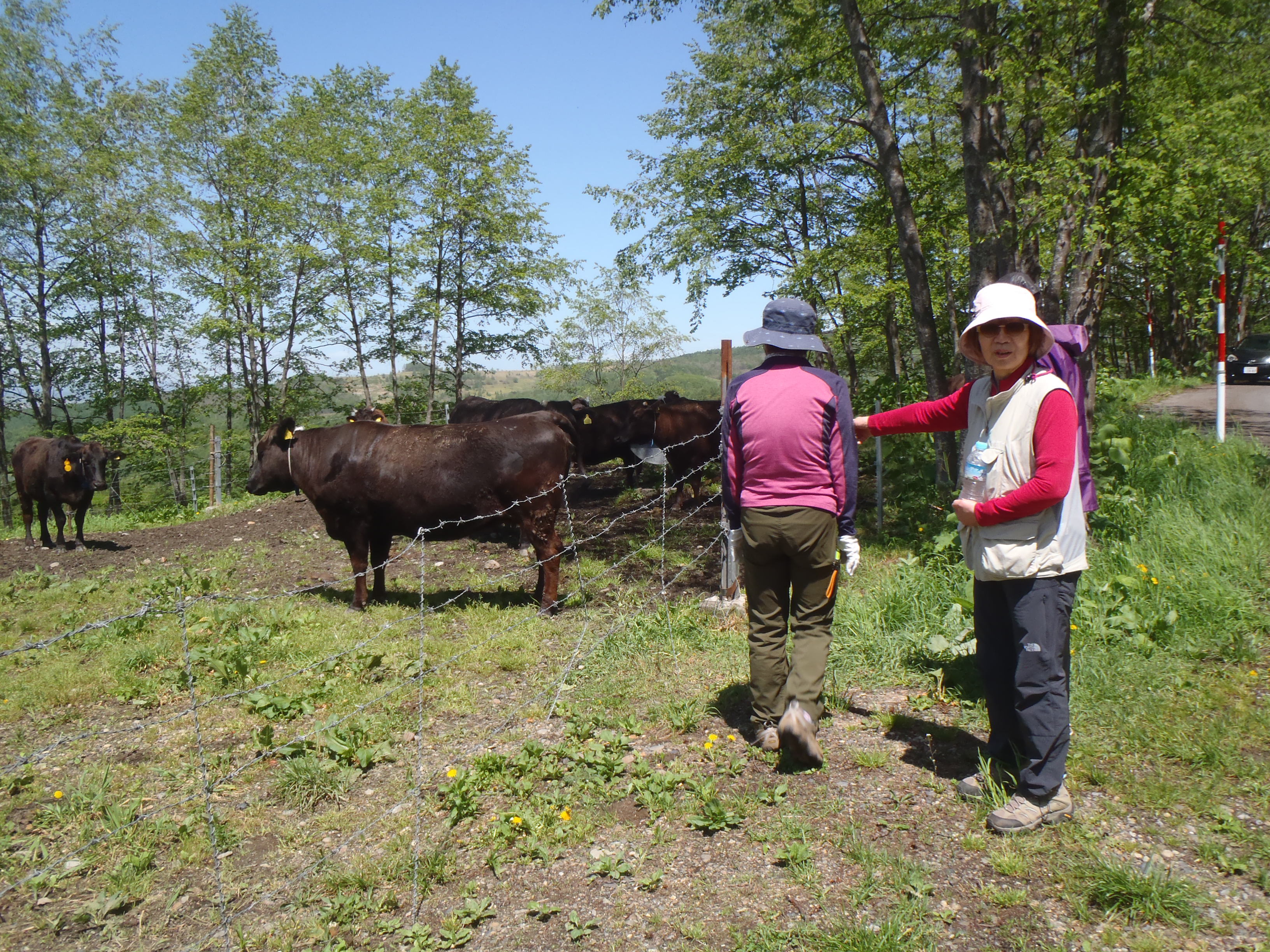 展望台近くの放牧場で 短角牛と触れ合い撮影会.