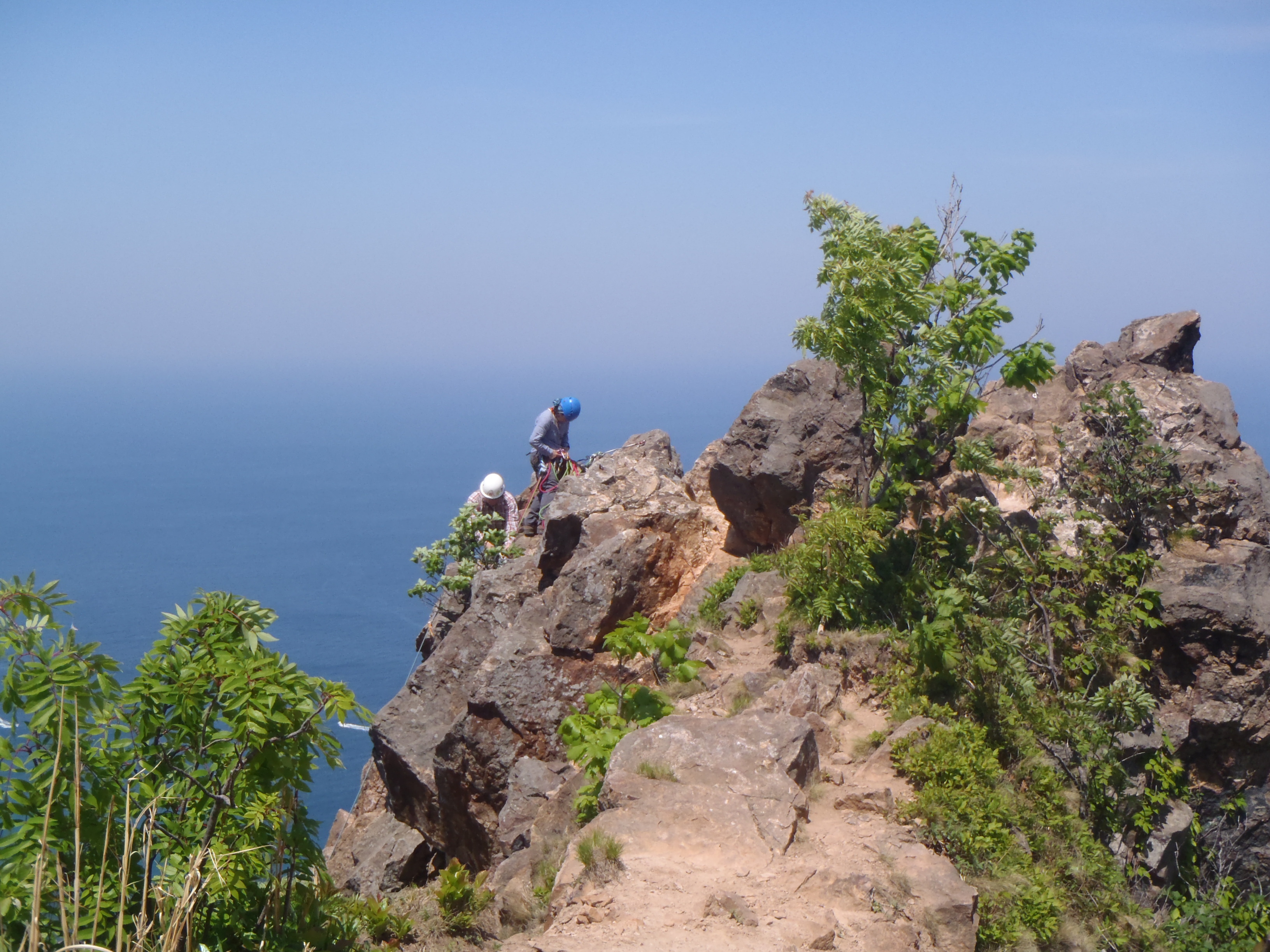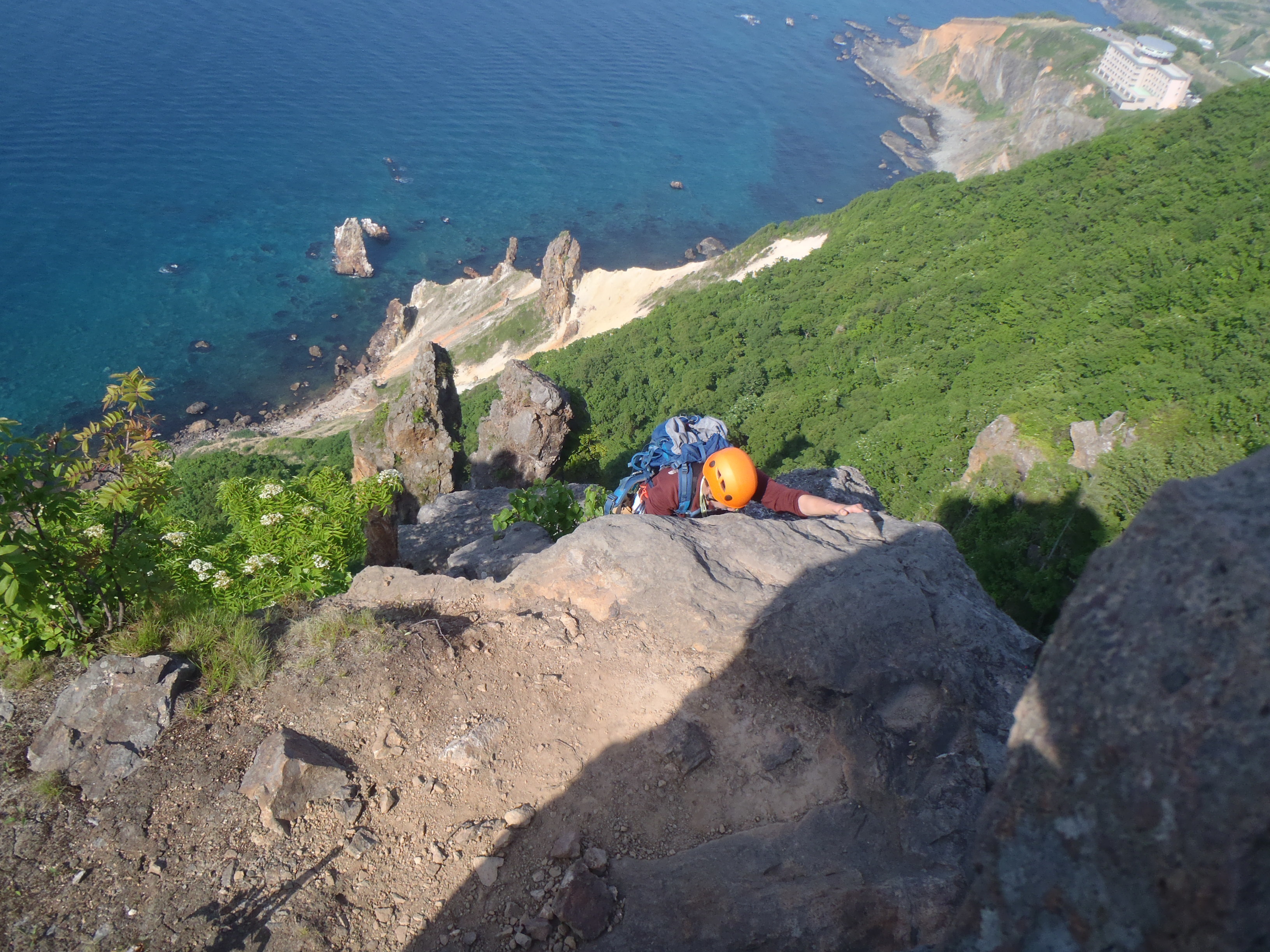 東のチムニー岩で基礎練習 いつもなら爽やかな海風も 今日は熱風だあ~。