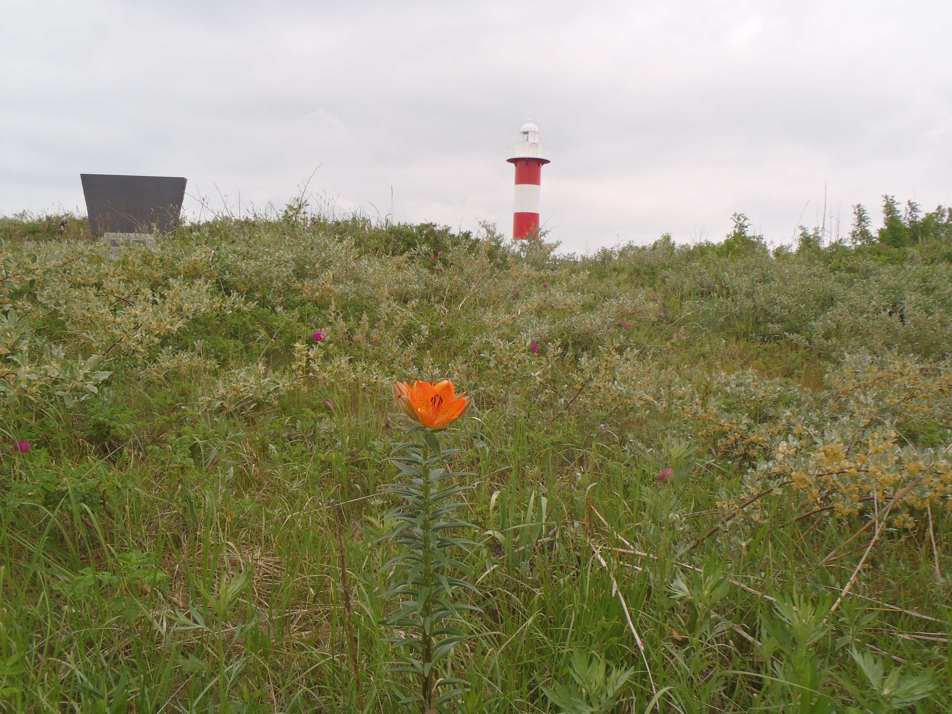 ハマナスが満開の頃かと期待して 石狩灯台に行きました。