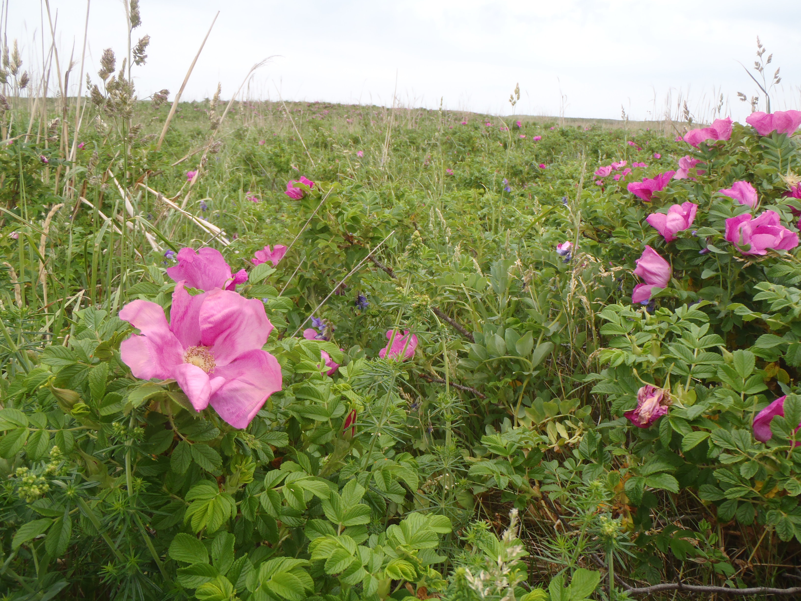 ハマエンドウとハマナスが群生していました。