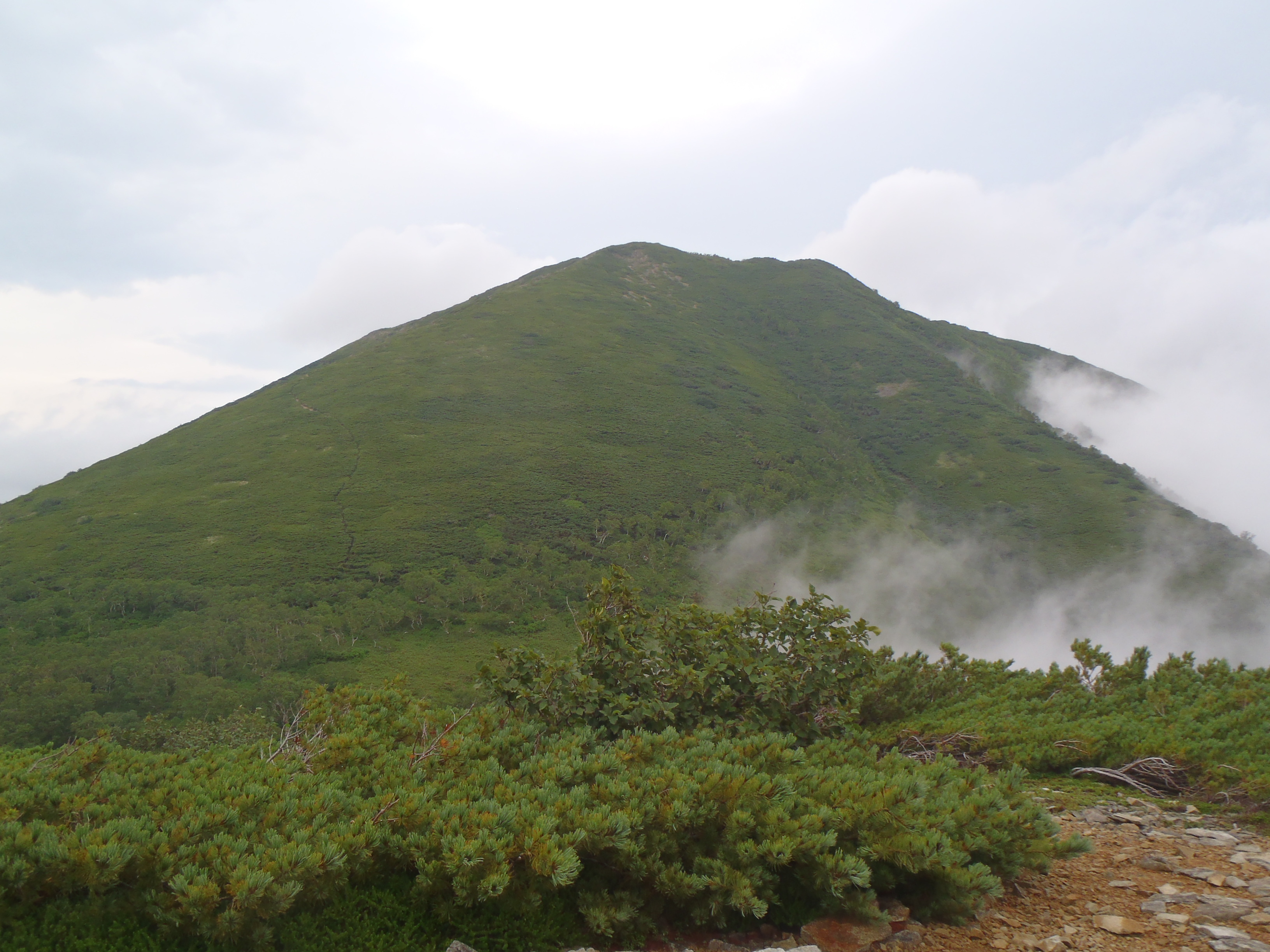 ニペソツ山方面はガスの中。