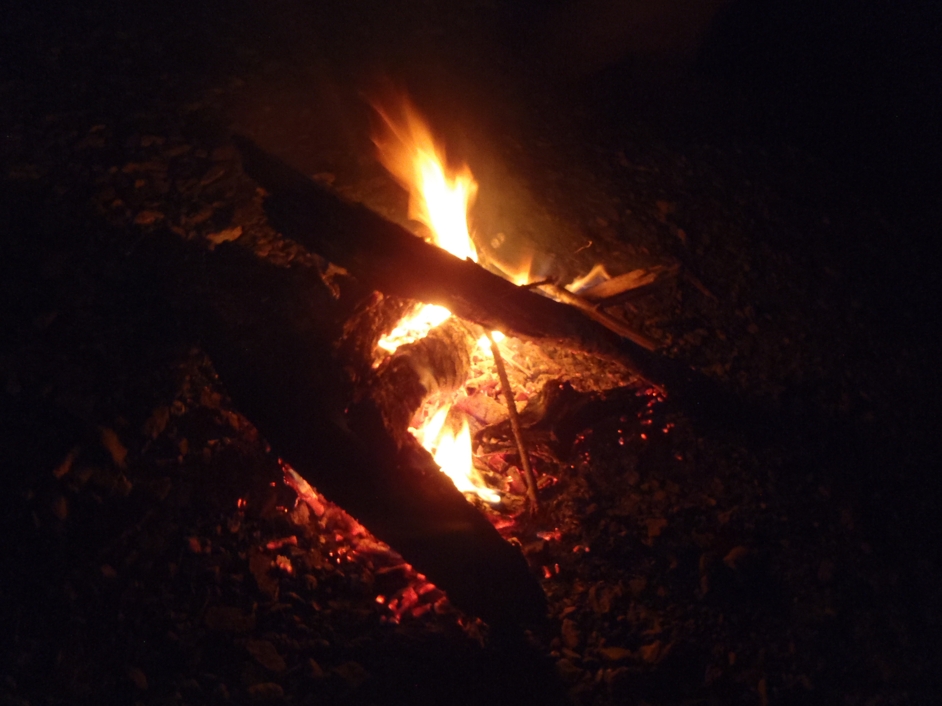 シンノスケ迂回林道からシュナイダー登山口で キャンプファイアー。