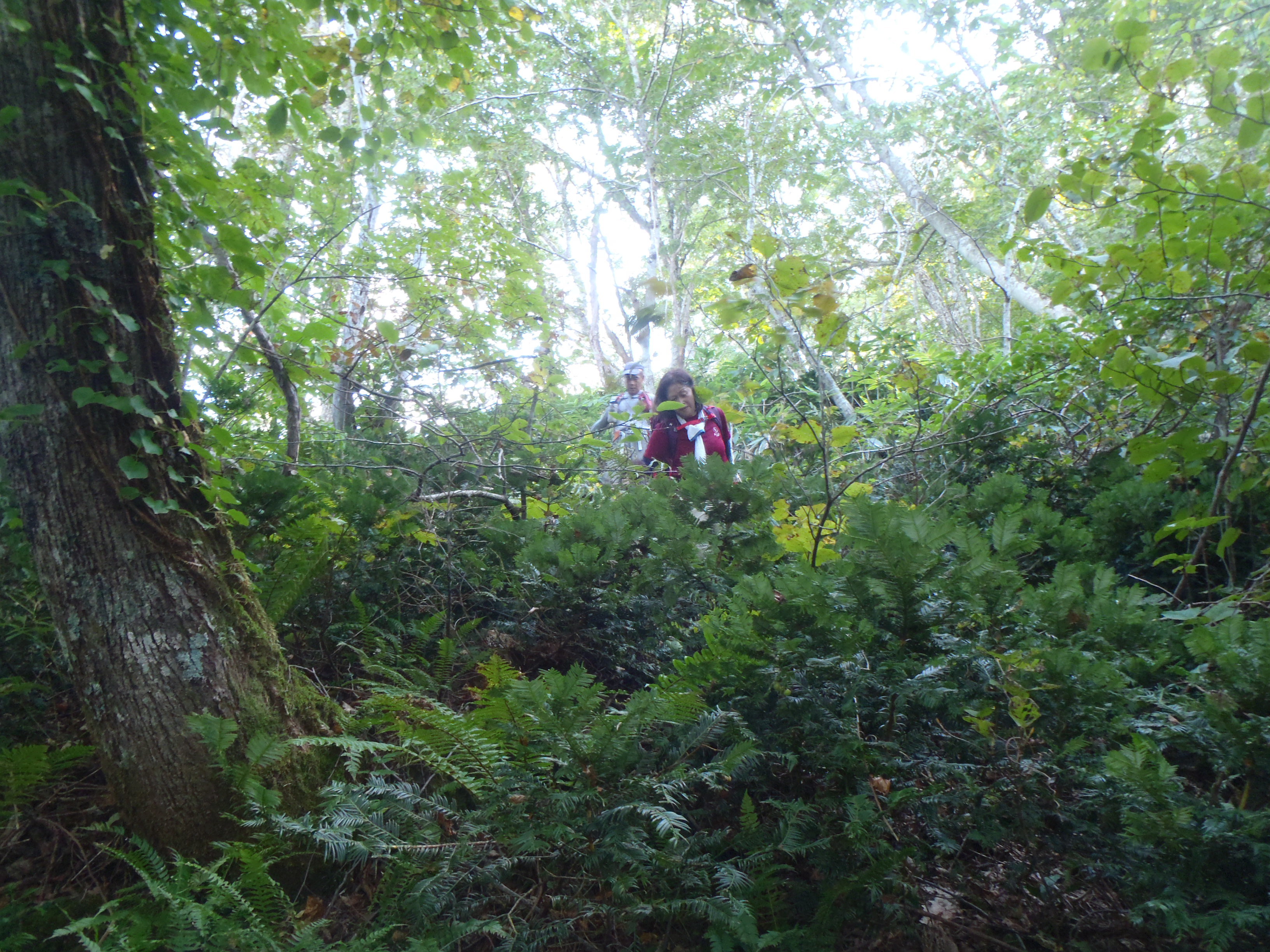 東尾根の山頂付近は背丈以上の根曲がり竹に覆われて ヒーヒー。