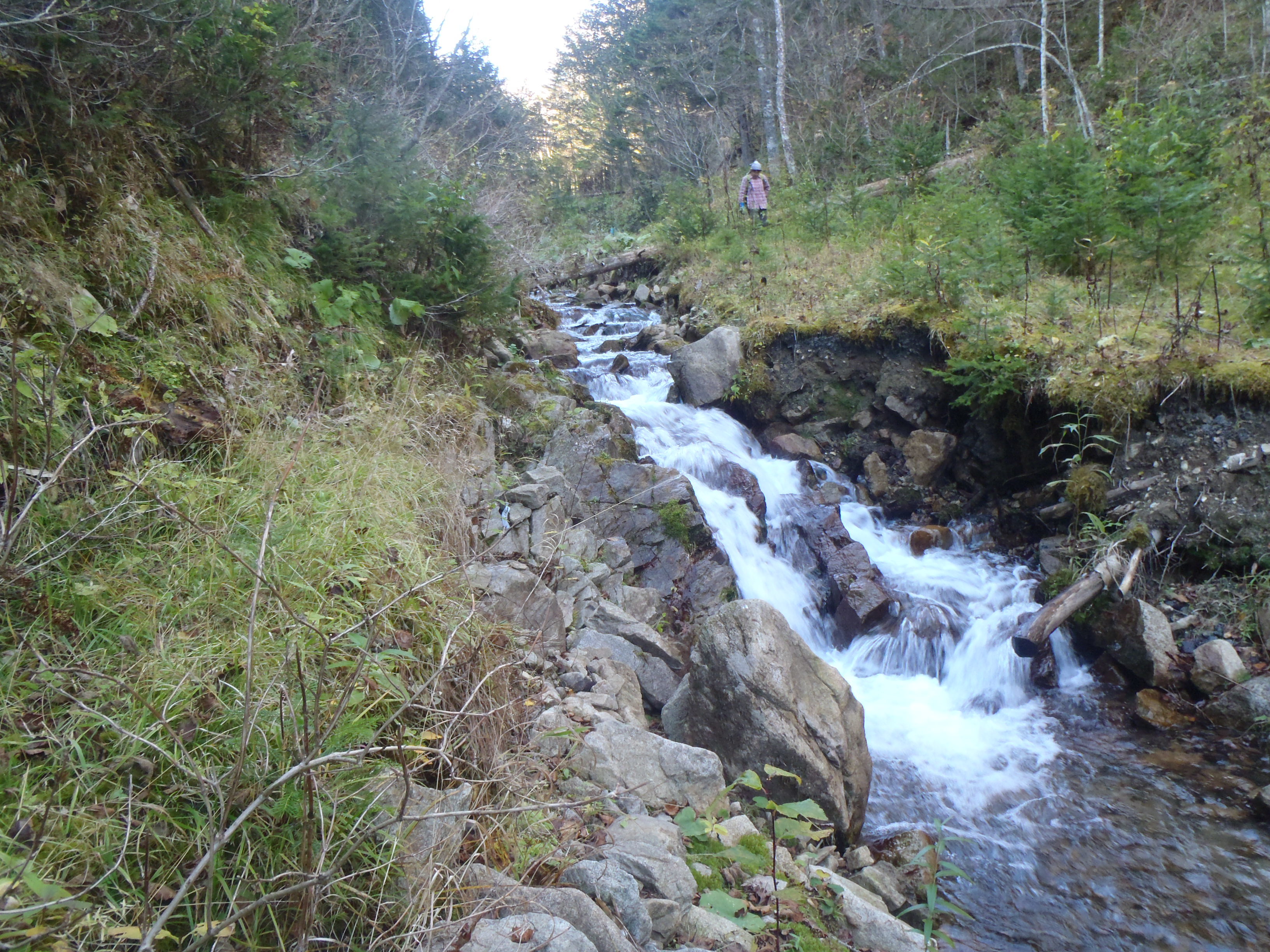 川幅2m程度 水深も浅いので スパイク長くつ試し履きしました。