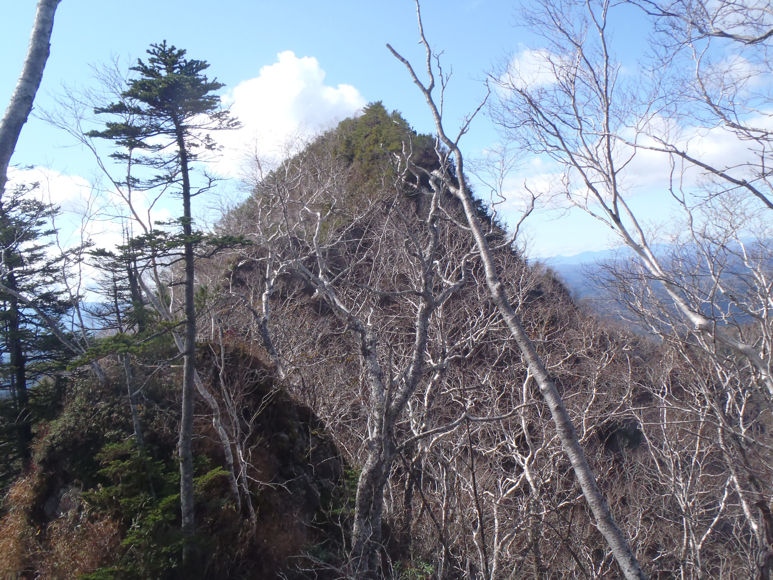 手前にも小さな岩峰が二つあって 細い稜線には古い踏み跡が続いていました。