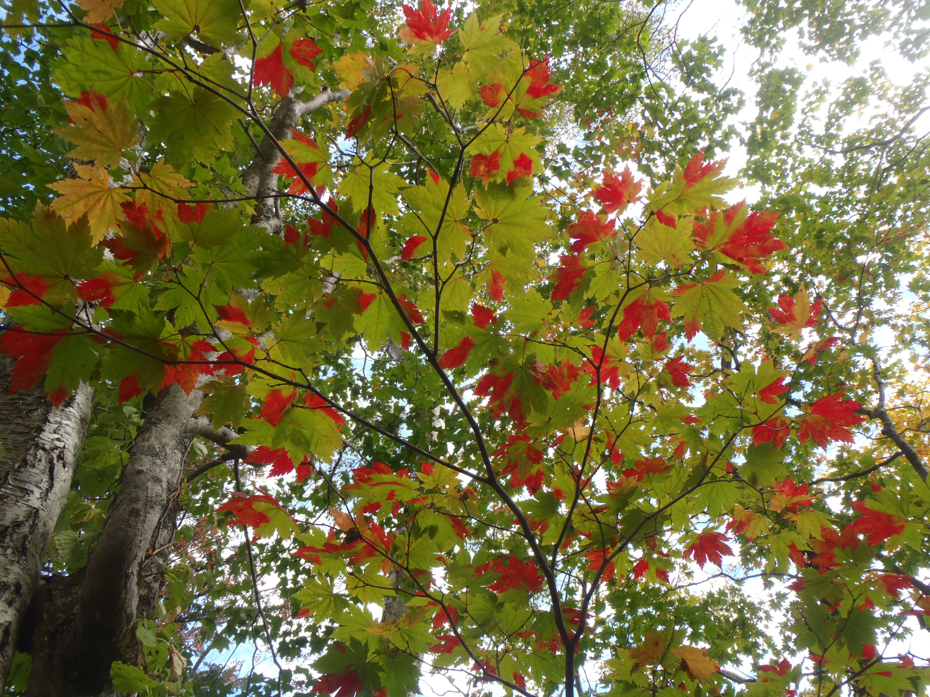 1合目の紅葉 一枚の葉なのに 緑と赤が混ざっていて 不思議です。