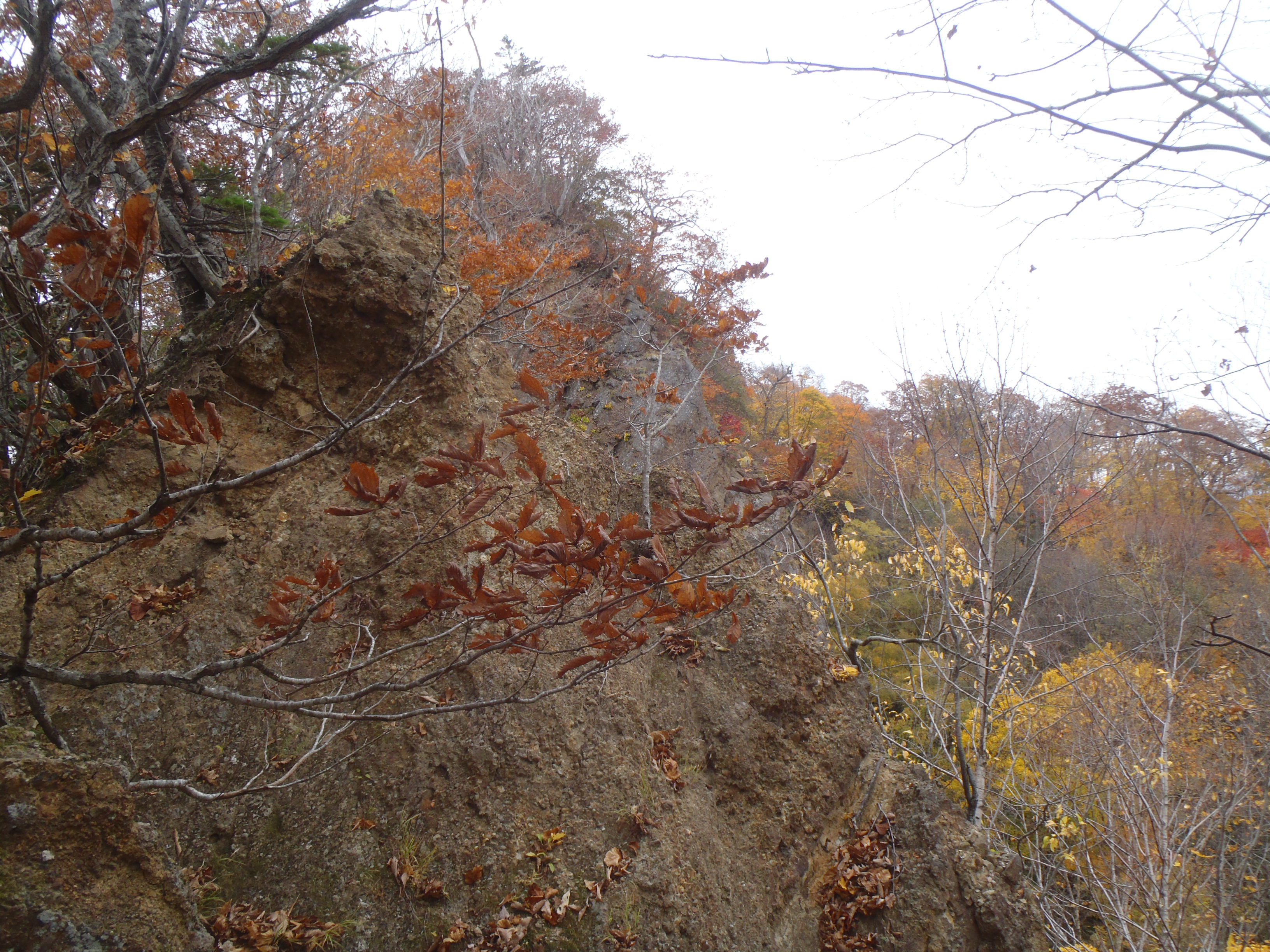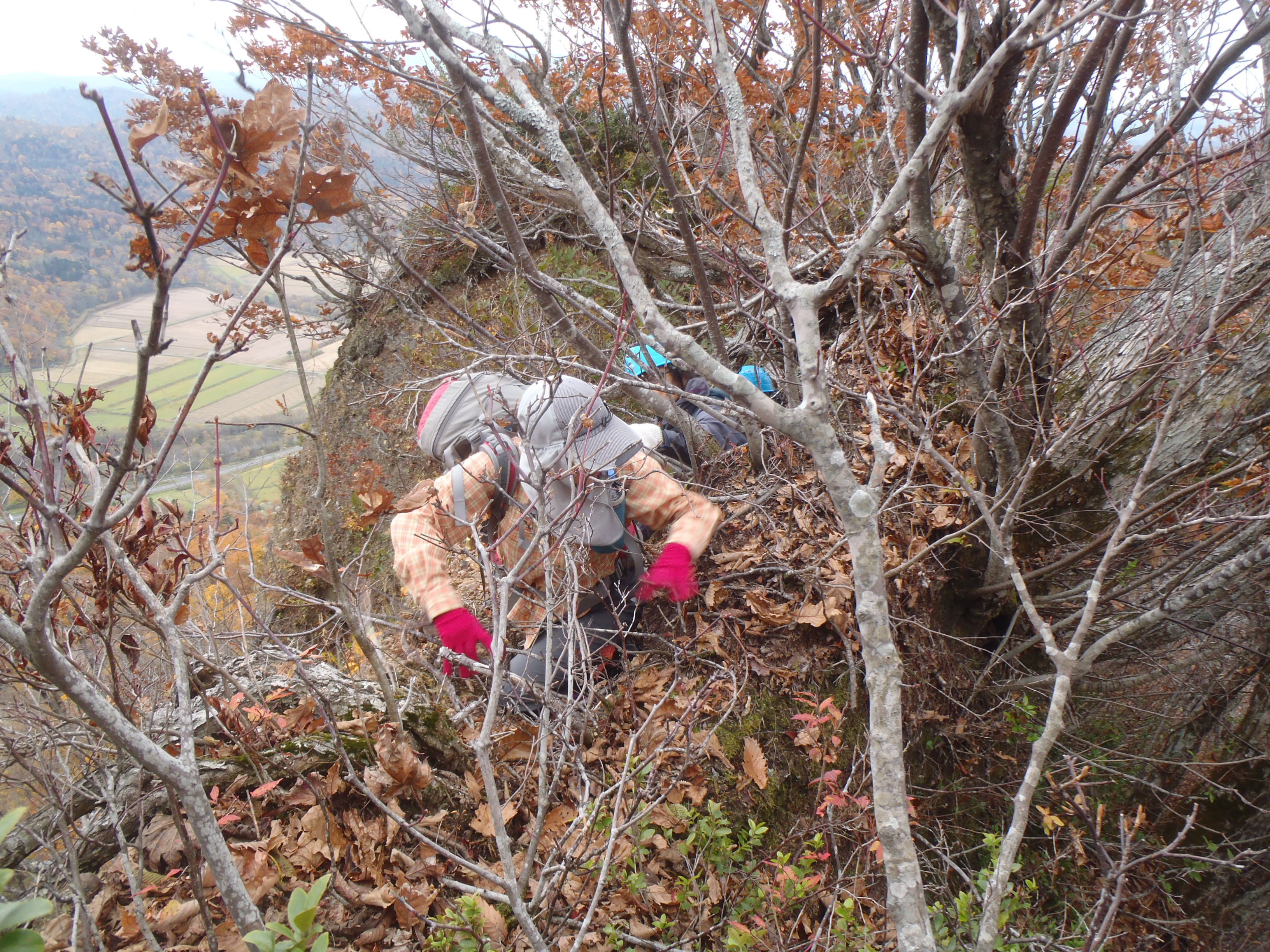 東斜面の崖が次々に現れ行く手を阻みますが 西側のブッシュ帯に迂回して前進します。