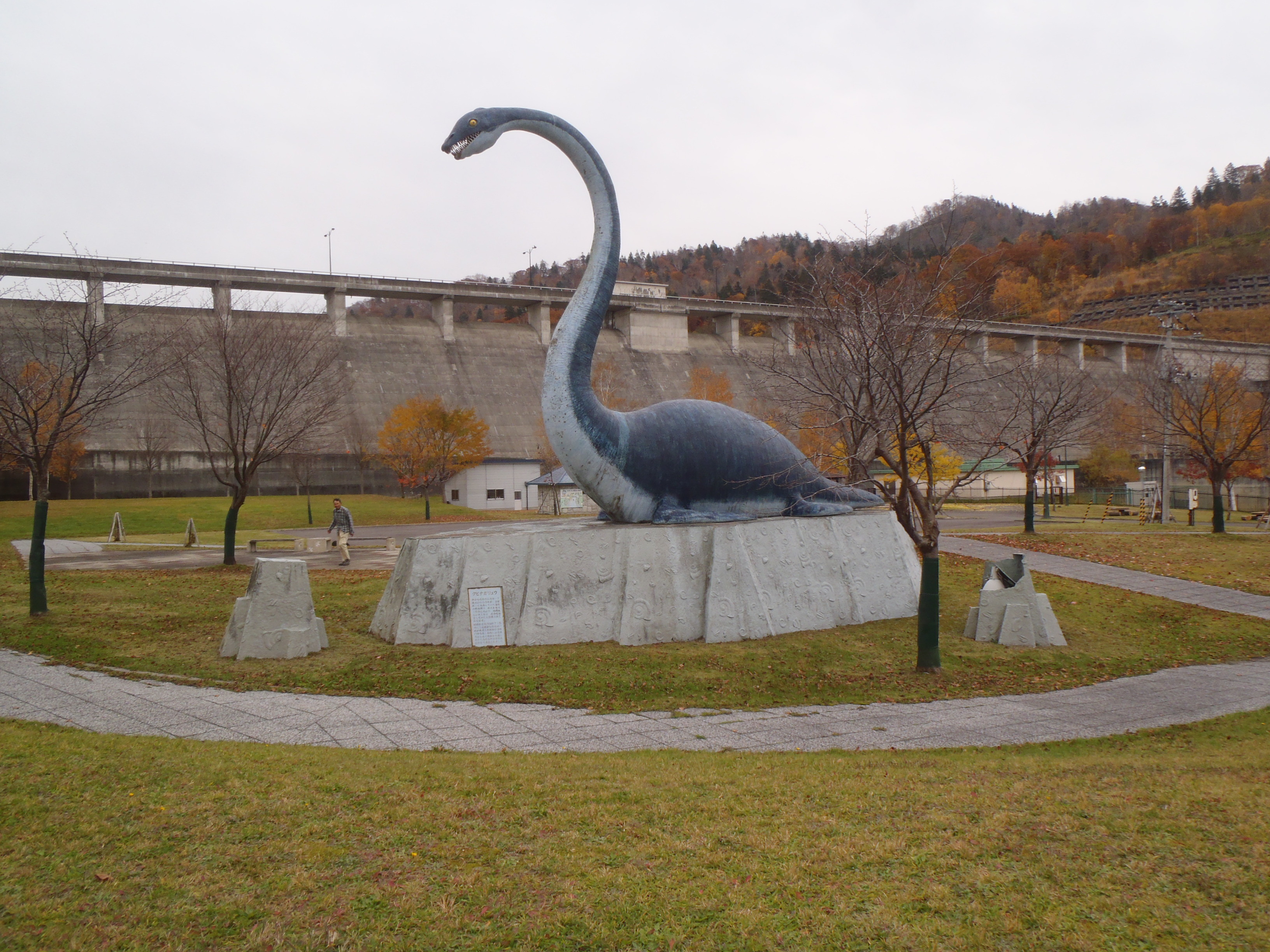 ダム公園に寄ったら クビナガリュウのモニュメントがありました。