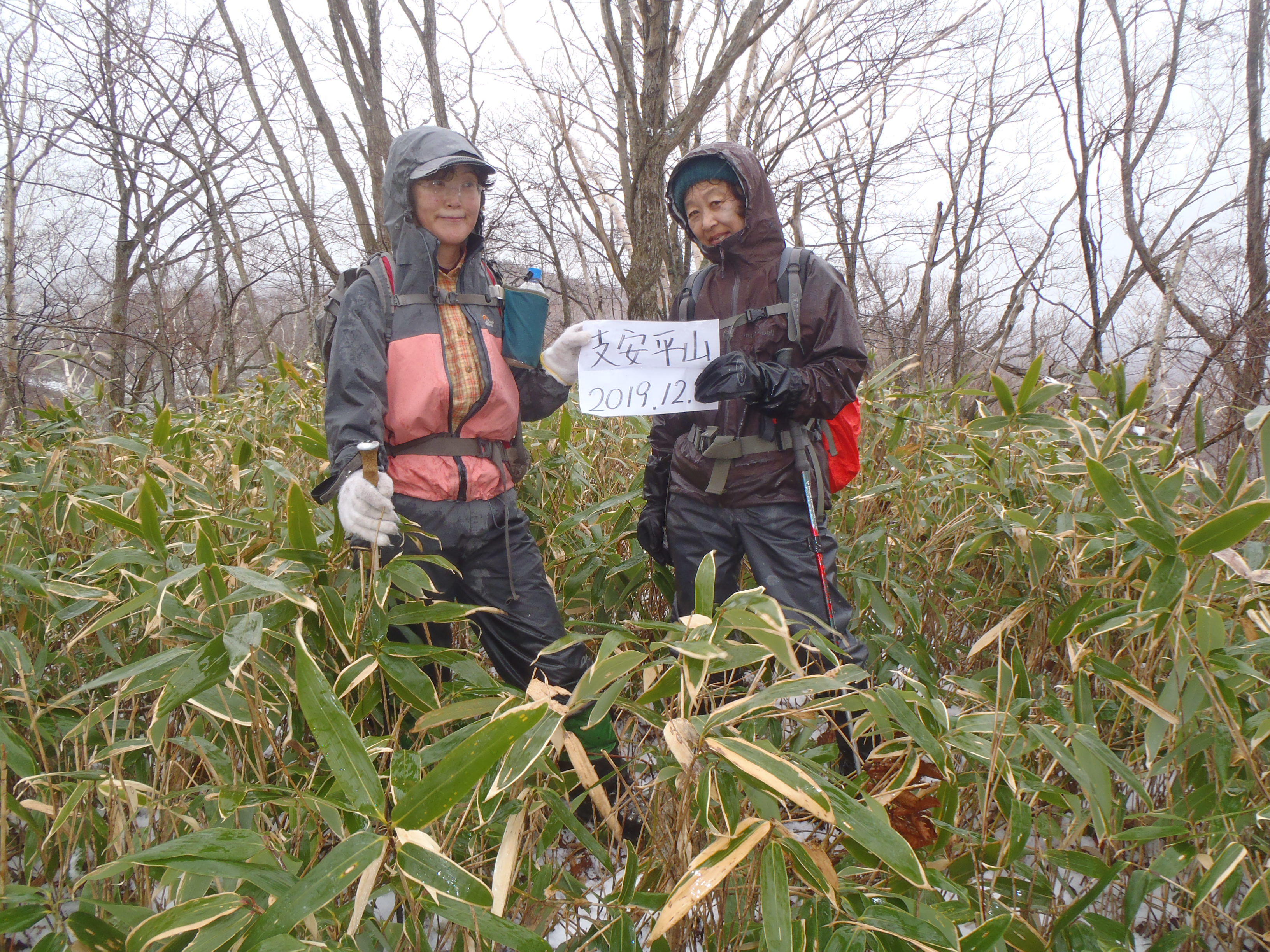 歩き始めて2時間弱 林道を離れて50m 低い笹漕ぎで山頂に達しました。