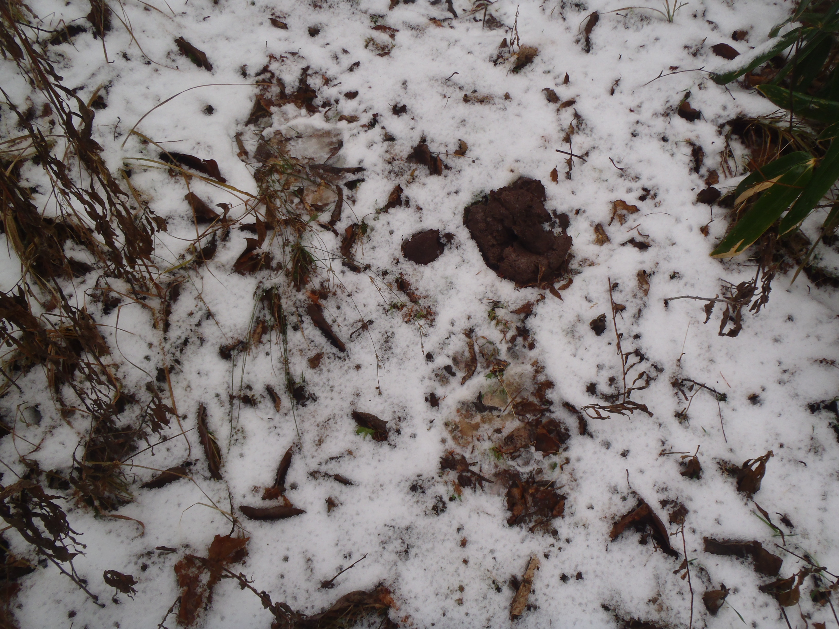 どんぐりを主食にしていると思われる茶色い砂のような糞。