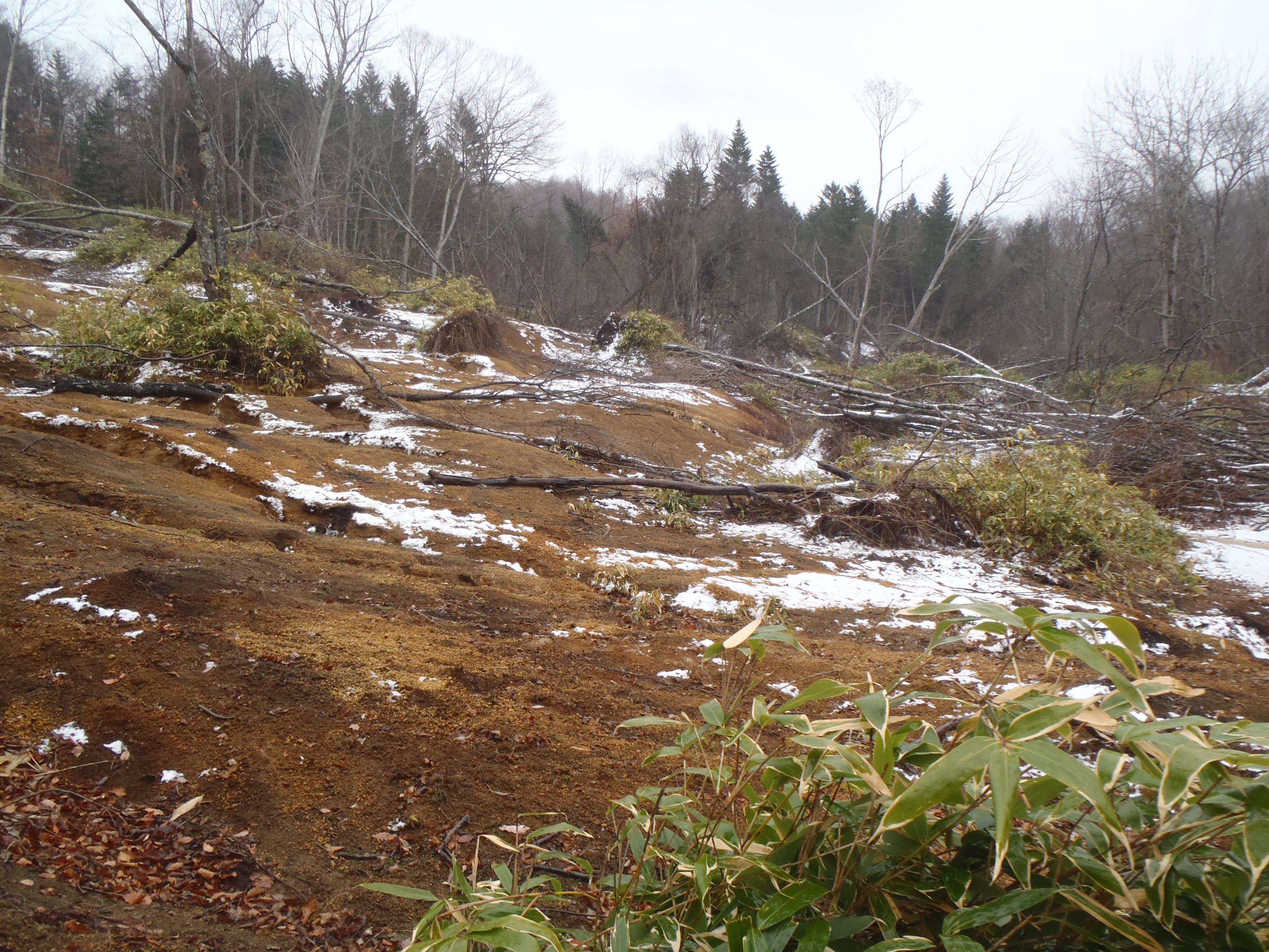 この傾斜で山が崩れるのか? 自然の猛威は想像以上だ。