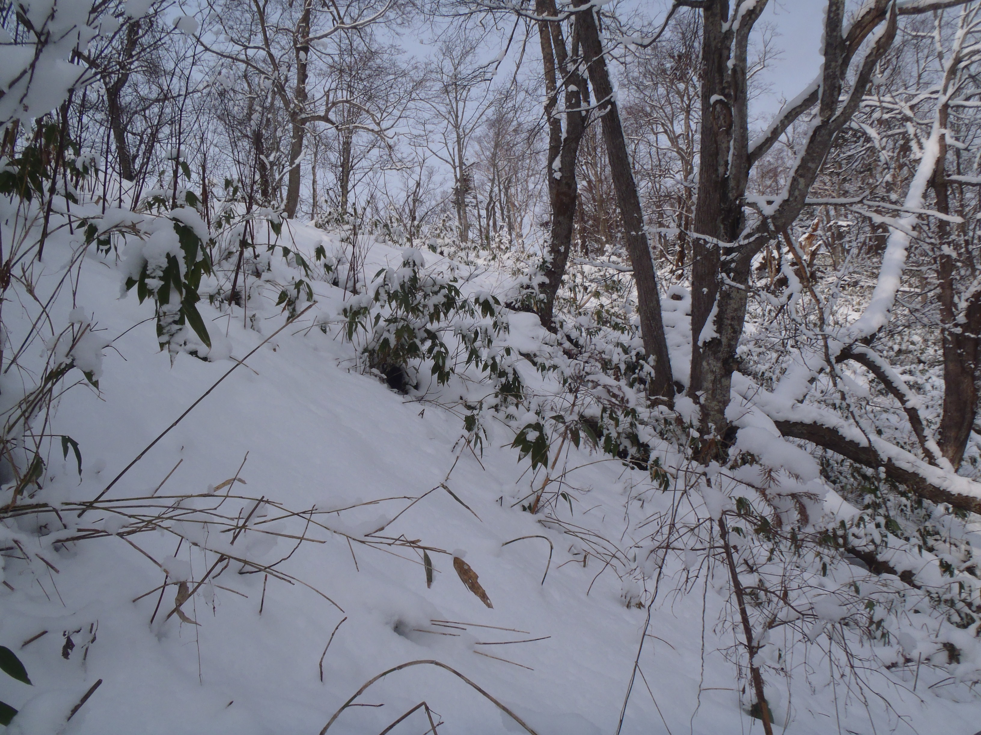 林道を離れると笹が倒れていなく スキーが引っかかって鬱陶しいです。