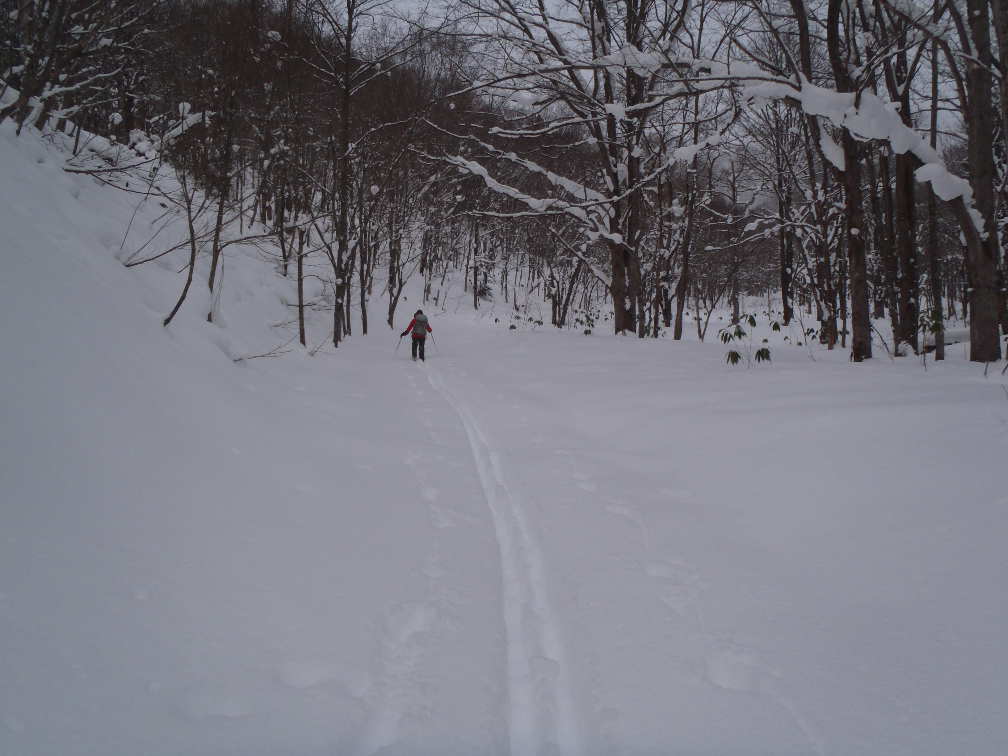 林道は40cmの積雪で踝埋まる程度のラッセル。