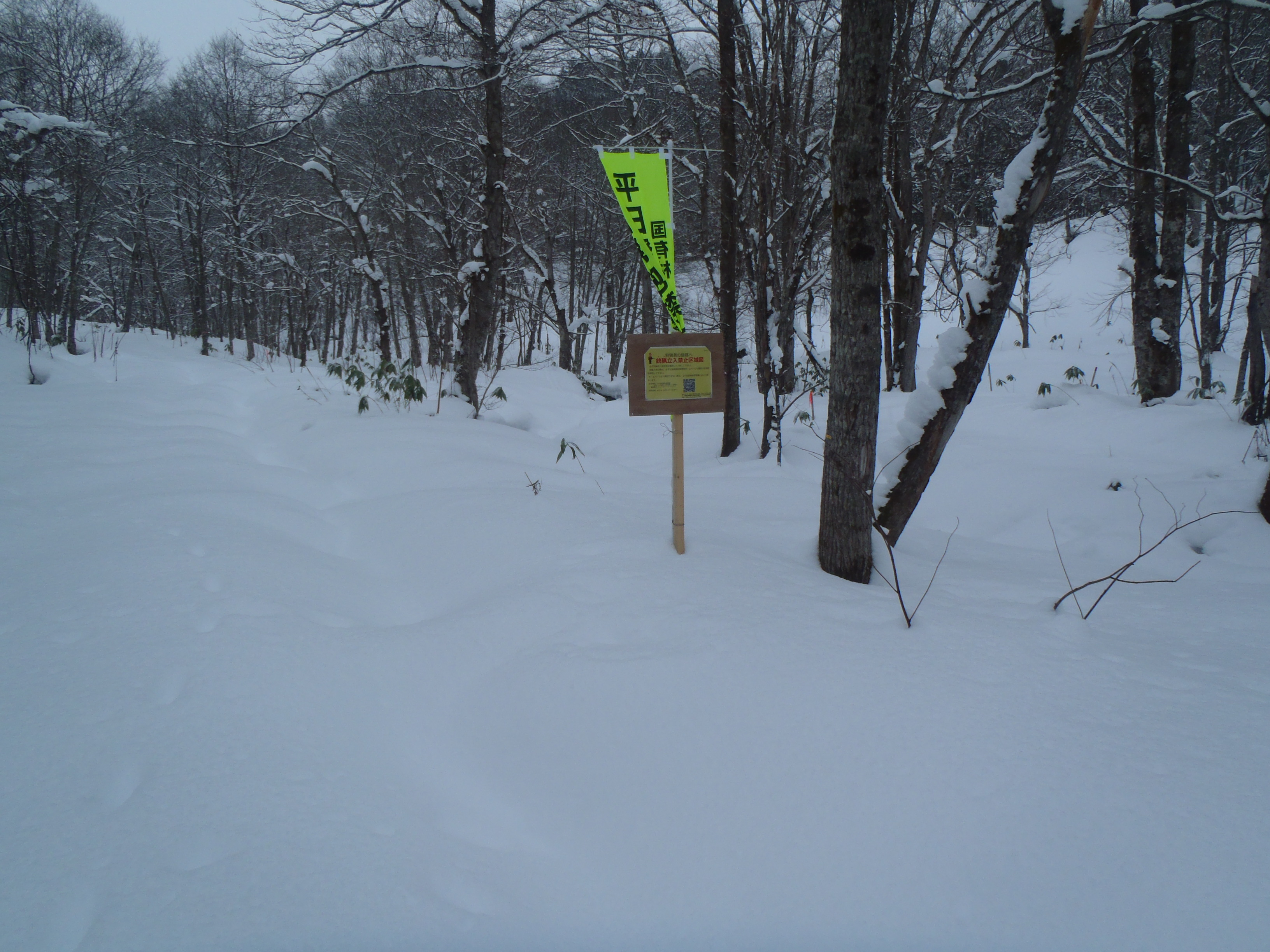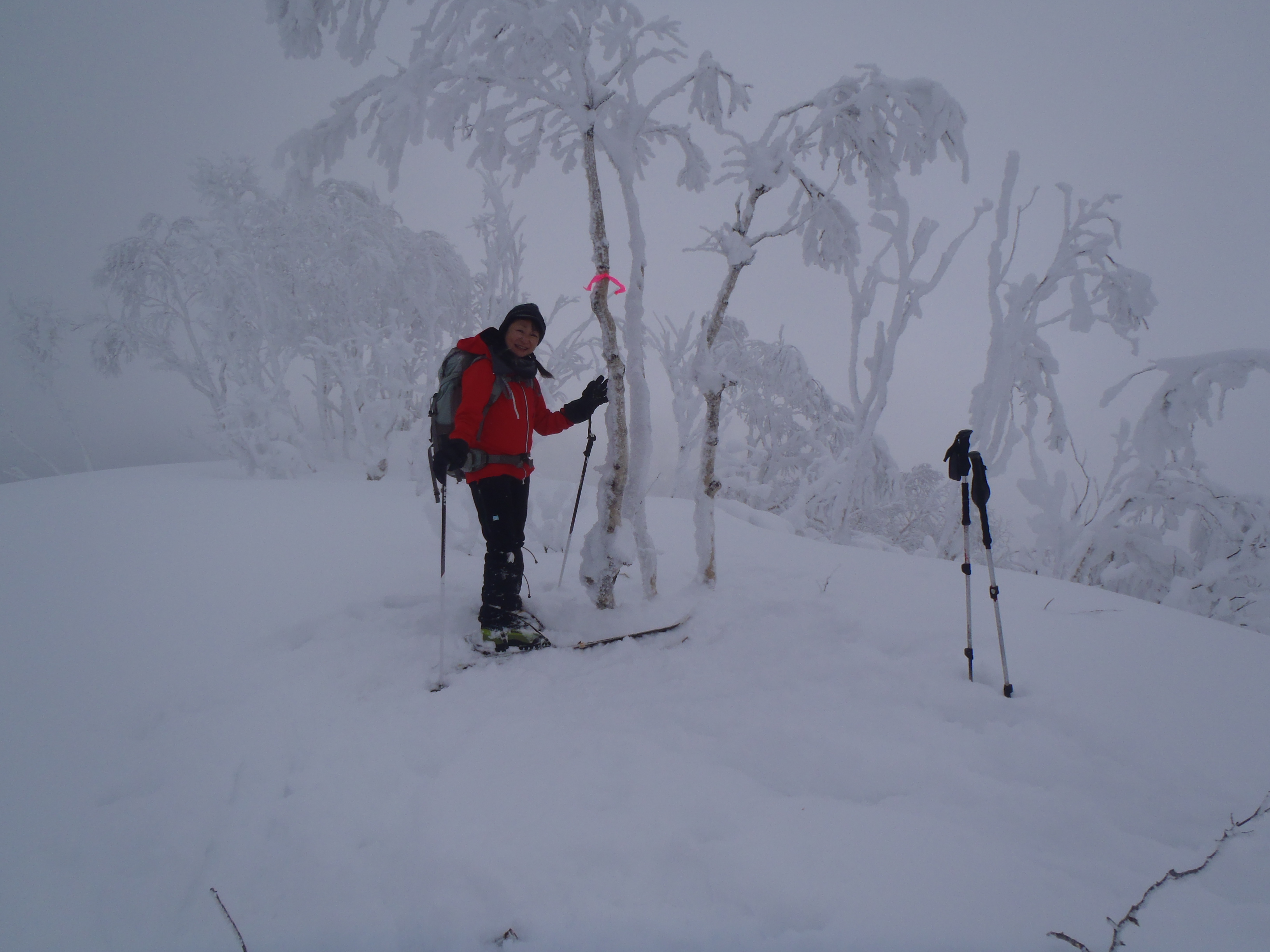1mの積雪 風もでてきたので三角点探しは諦めました。