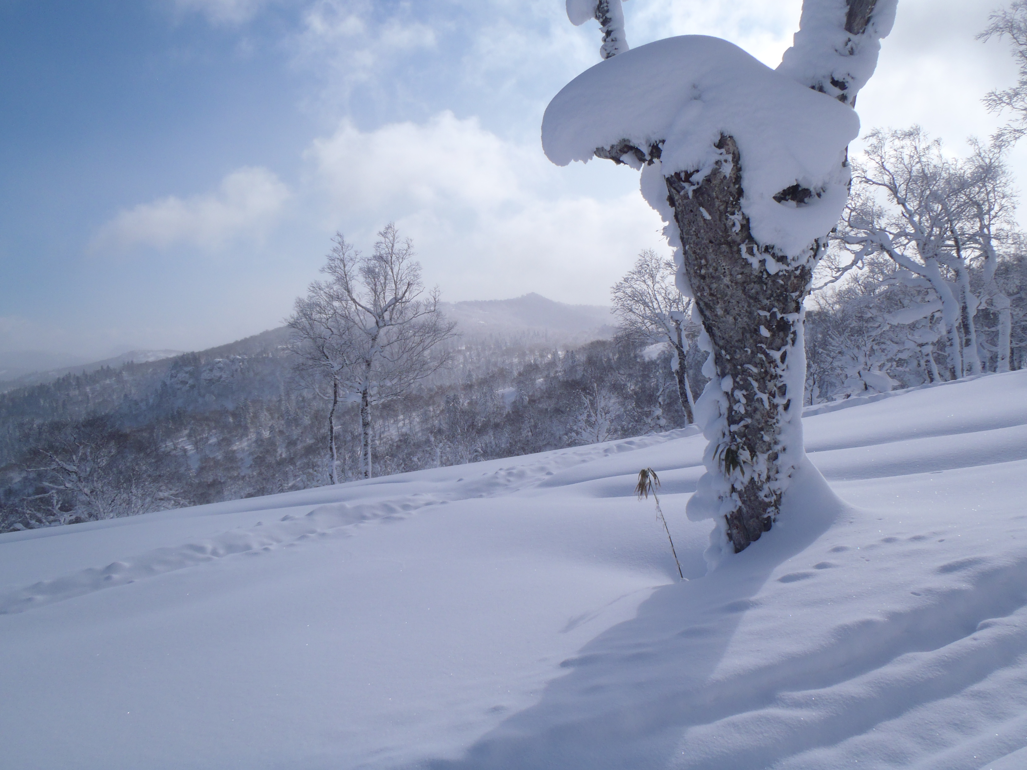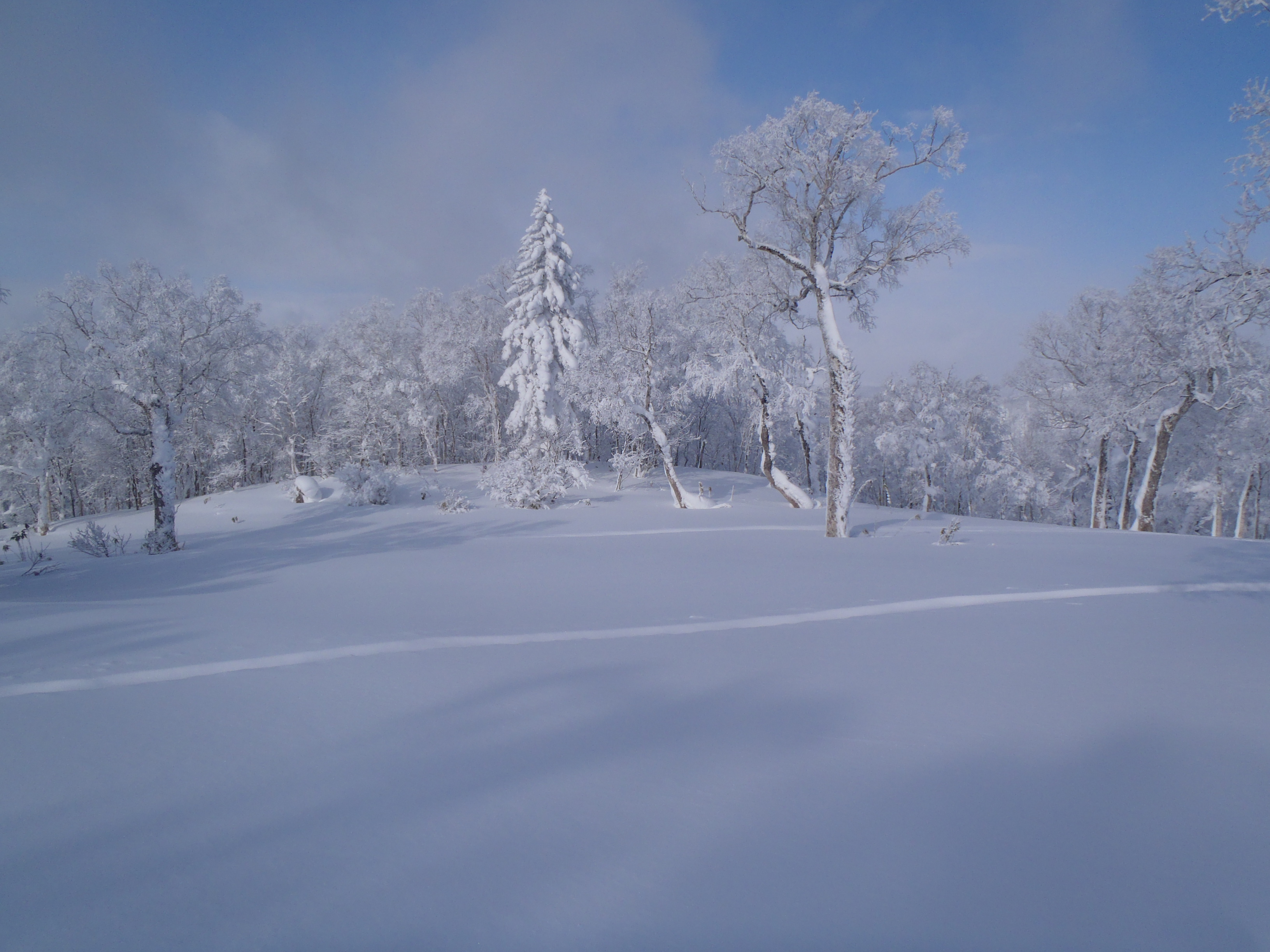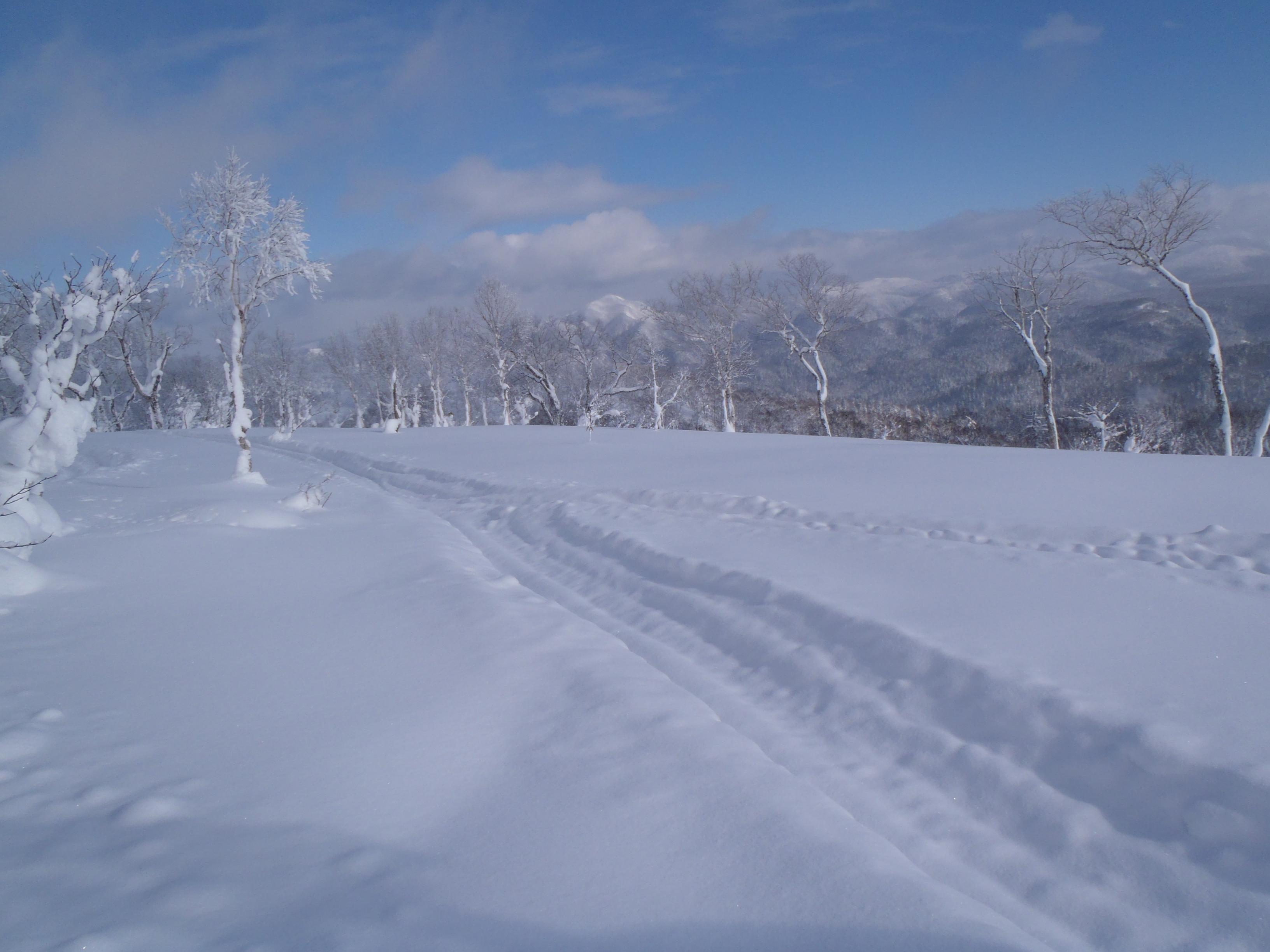 ラッセル覚悟でスキー用意しましたが 拍子抜けでした。