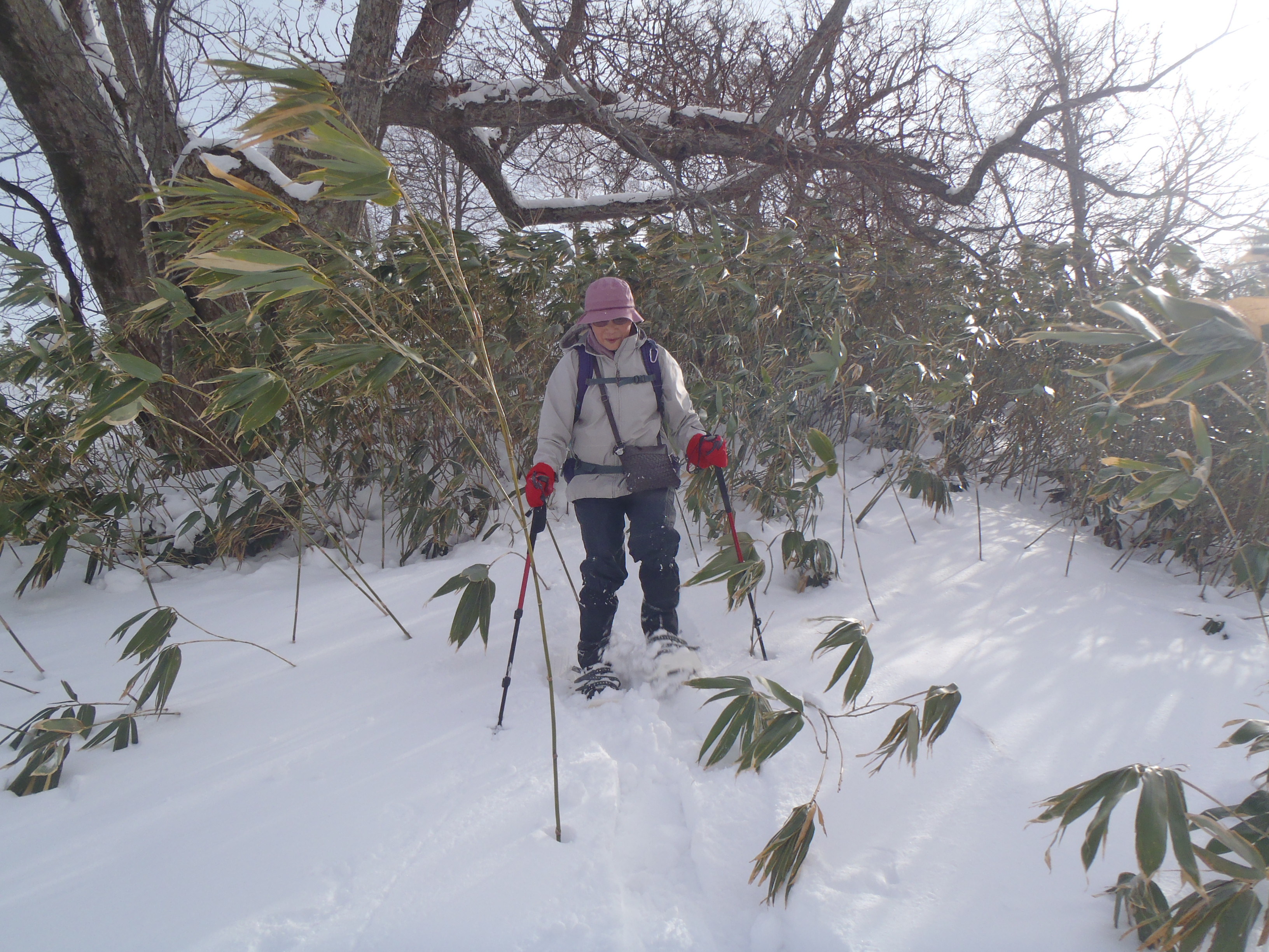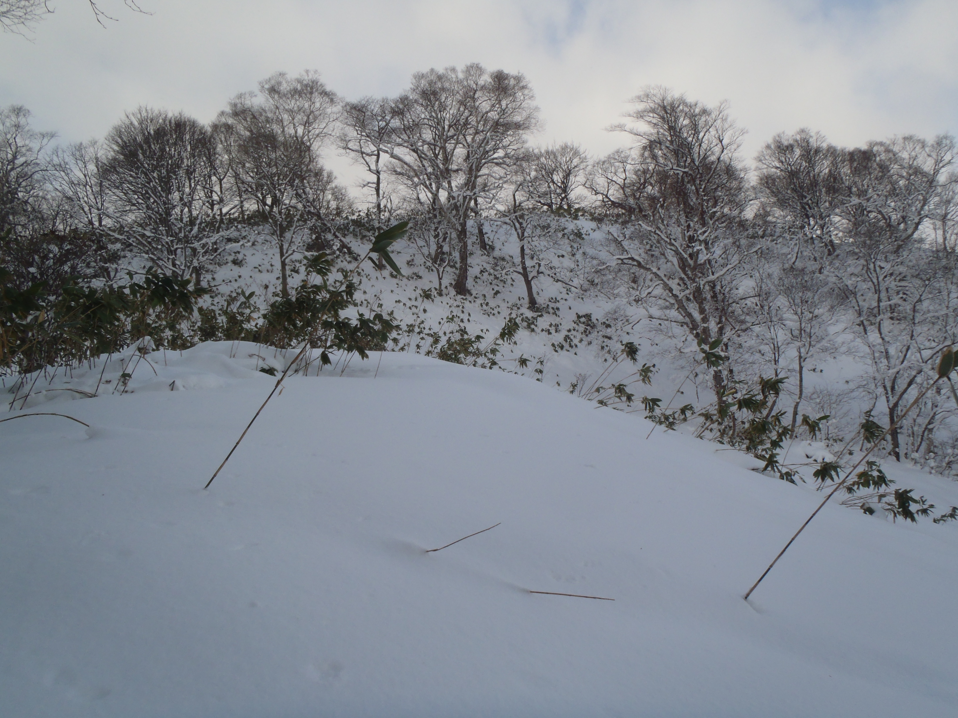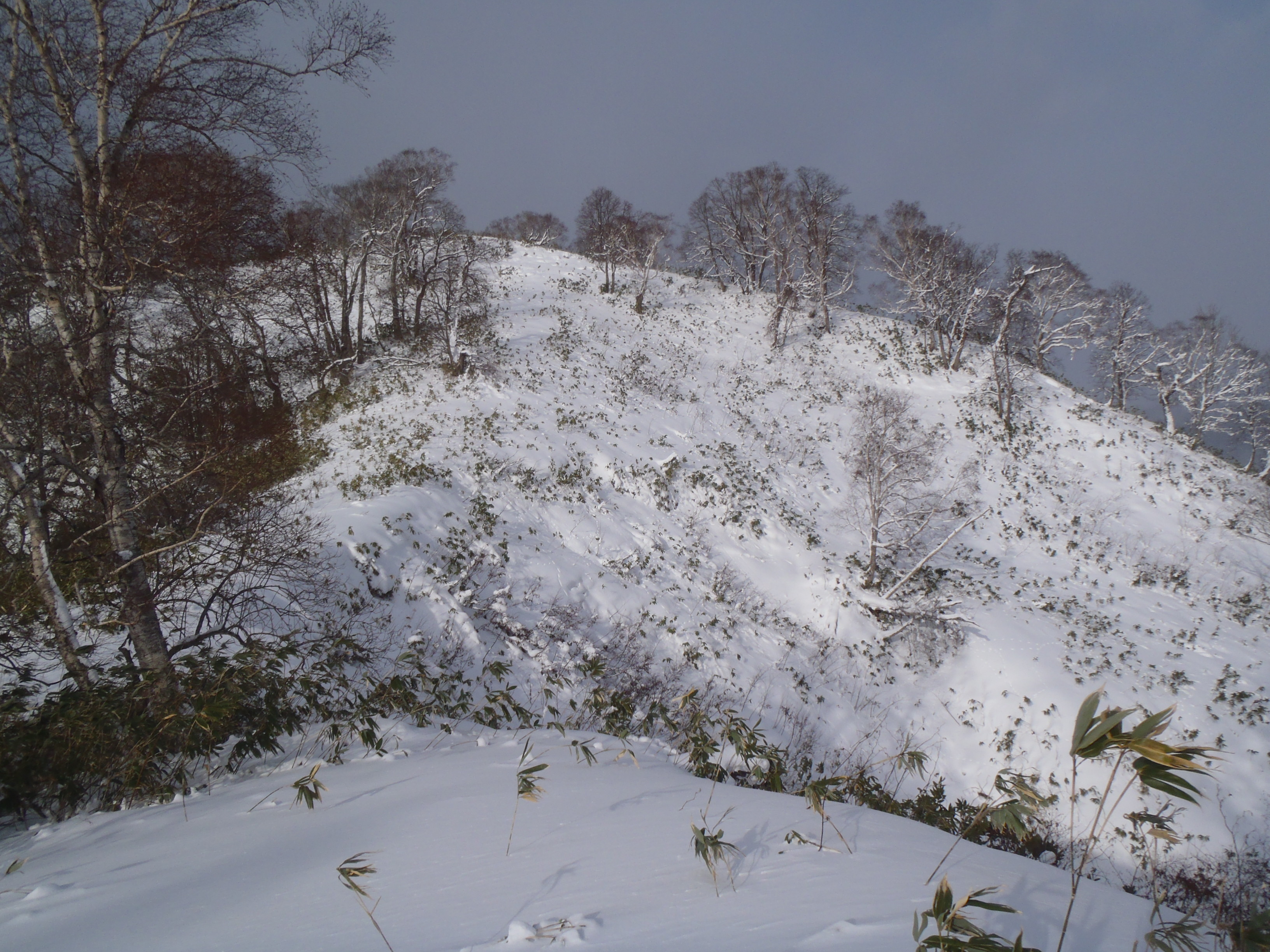 ズボズボ斜面を我慢して歩くと前衛峰が見えてきました。