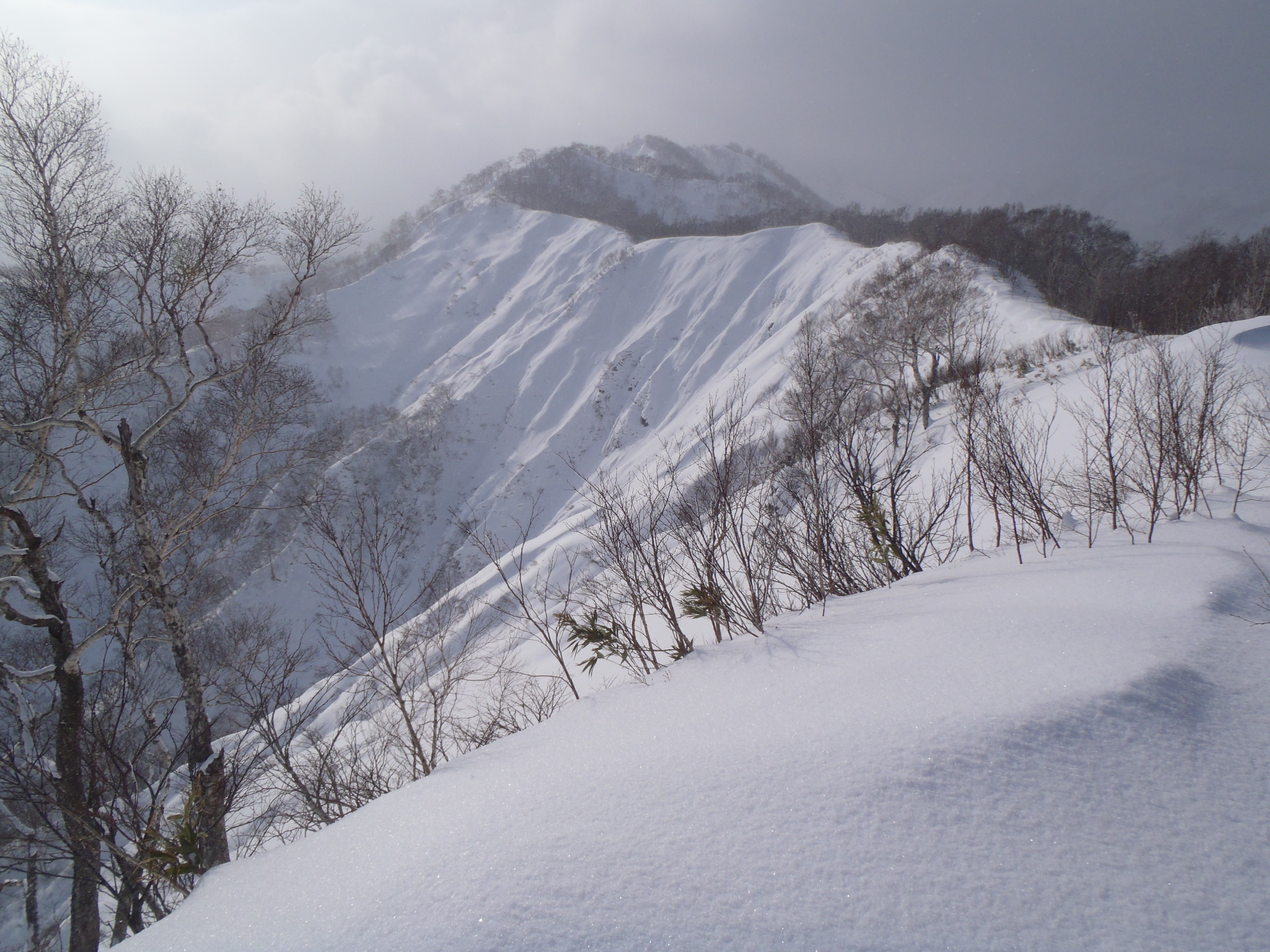 頂上直下の南斜面 ここを滑るのはちょっとした勇気が必要です。