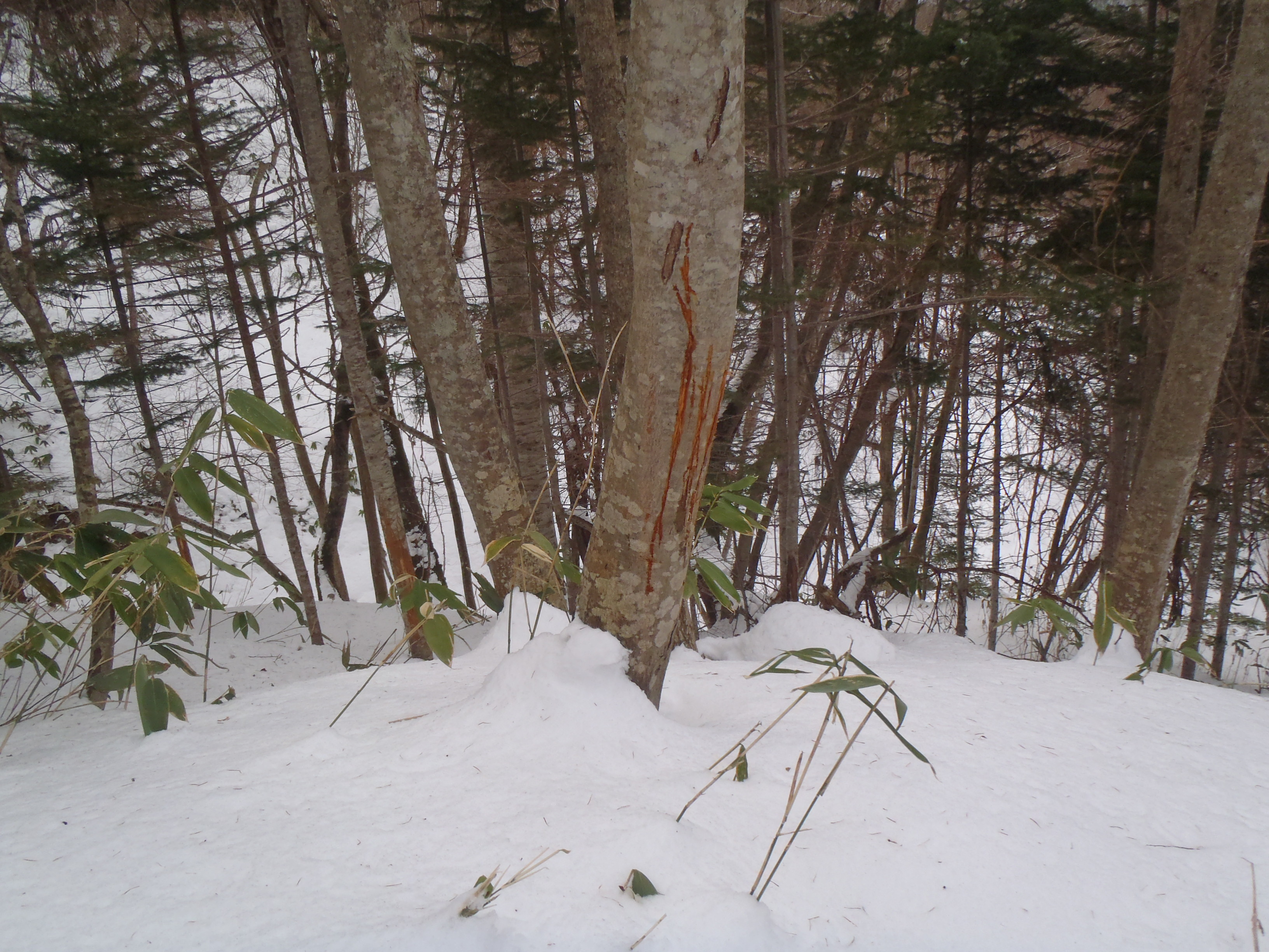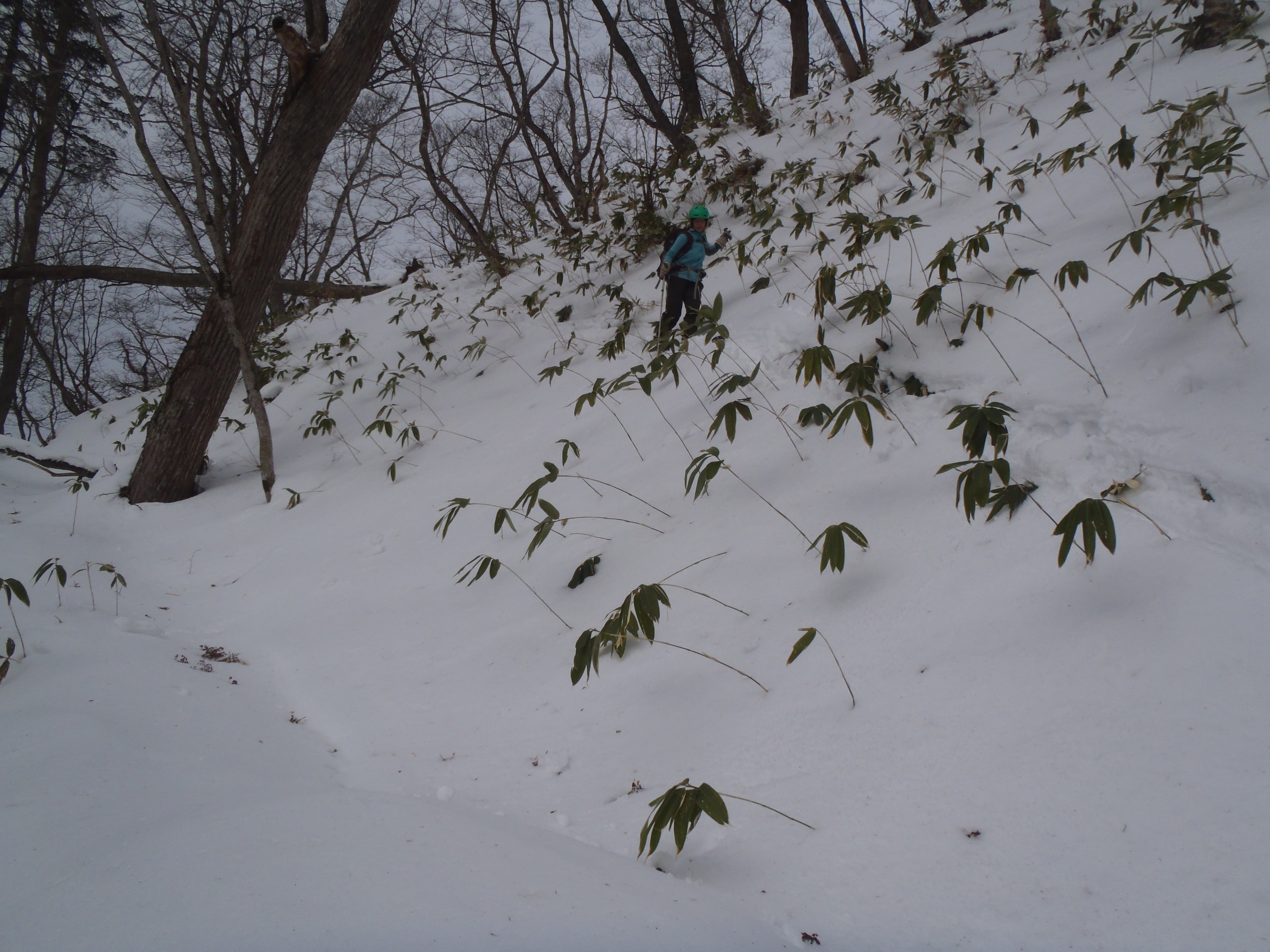 アップダウンの多い林道歩きに2時間弱 逃げ場のない笹だらけの急斜面を1時間。