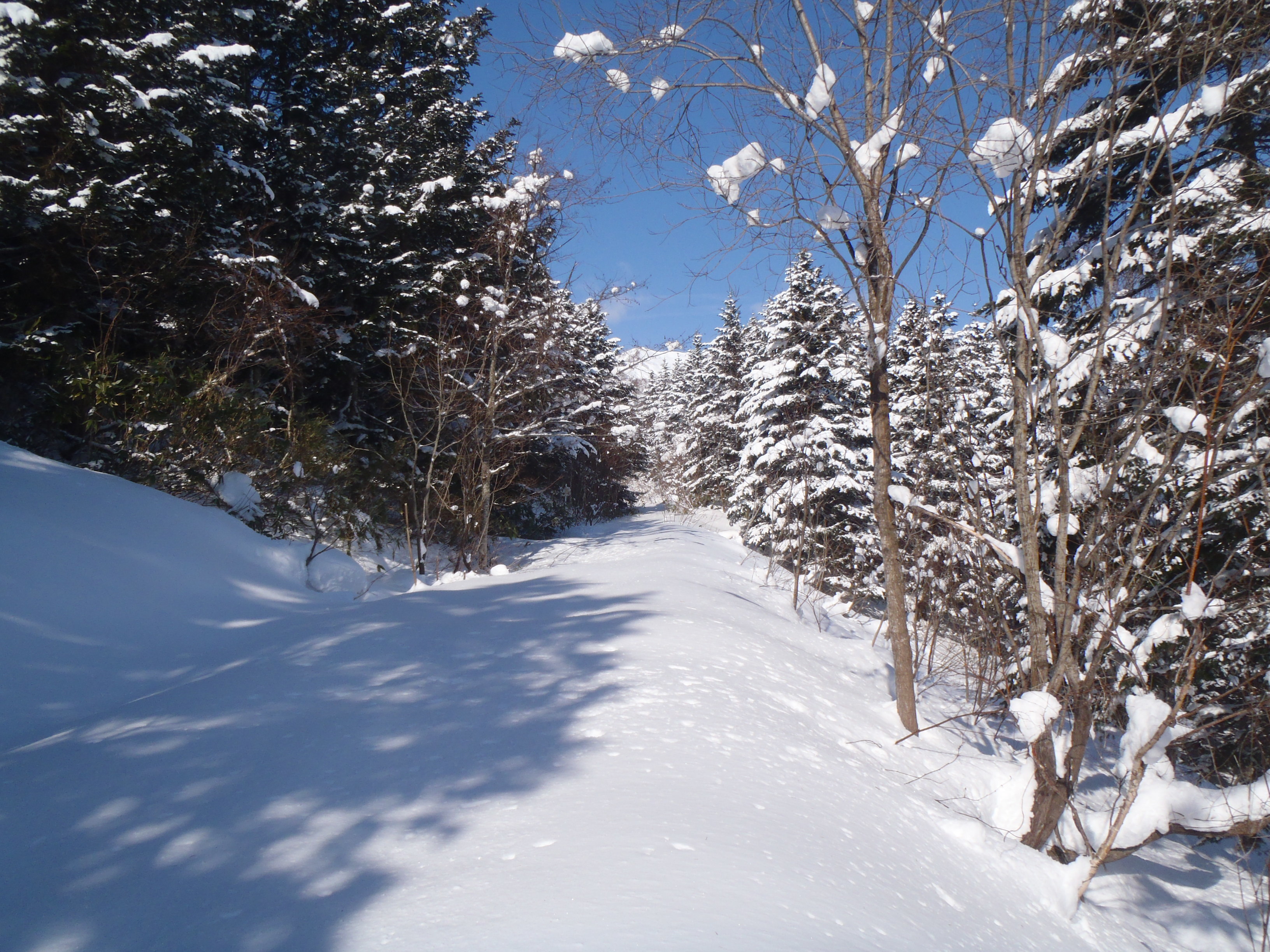 樹林帯に入ったら こっちのモノ 気分爽快 雪の山は 友達~。
